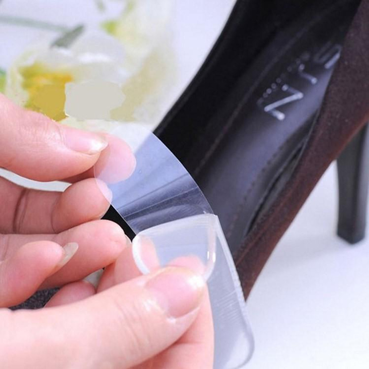 - Lưu ý: lau sạch giày trước khi dán miếng dán gót.