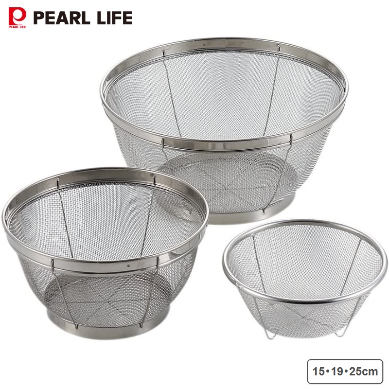 BỘ 03 CHIẾC RỔ INOX KHÔNG GỈ PEARL METAL LARA SHINE (Ф15/Ф19/Ф25cm) - HÀNG NỘI ĐỊA NHẬT BẢN