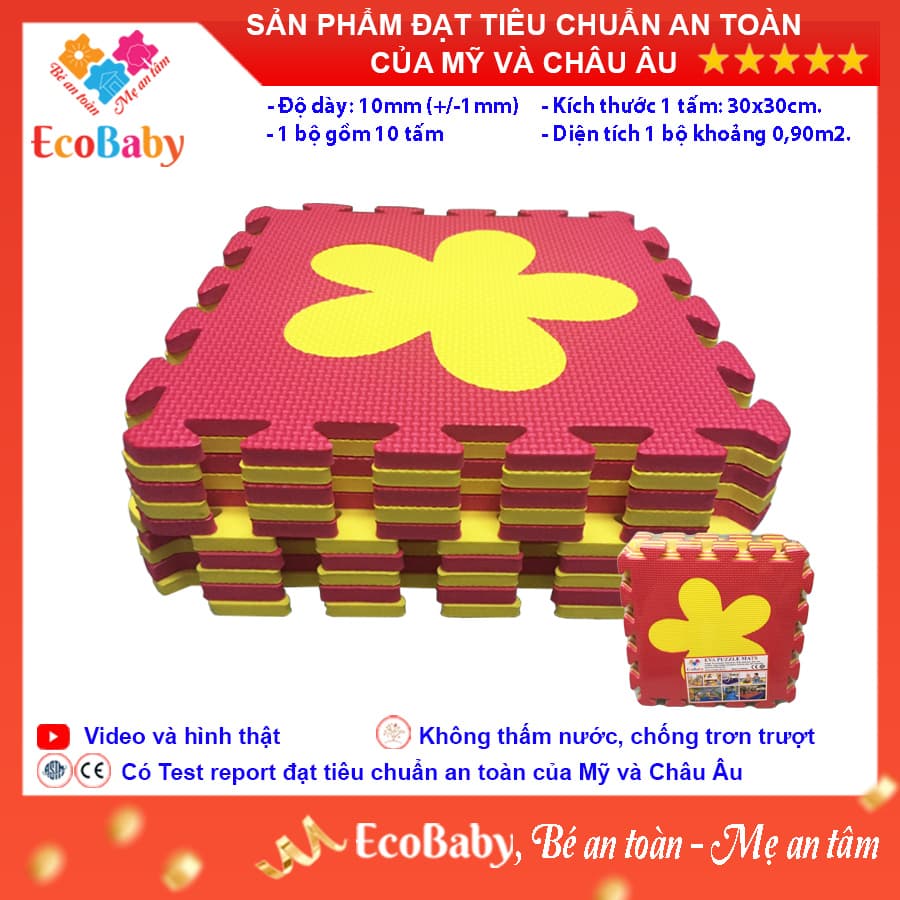 ✨Bộ 10 tấm Thảm xốp cho bé ECOBABY, thảm xốp đạt tiêu chuẩn Mỹ và Châu Âu, độ dày khoảng 1cm, kích thước 1 tấm 30x30cm - Hình bông hoa
