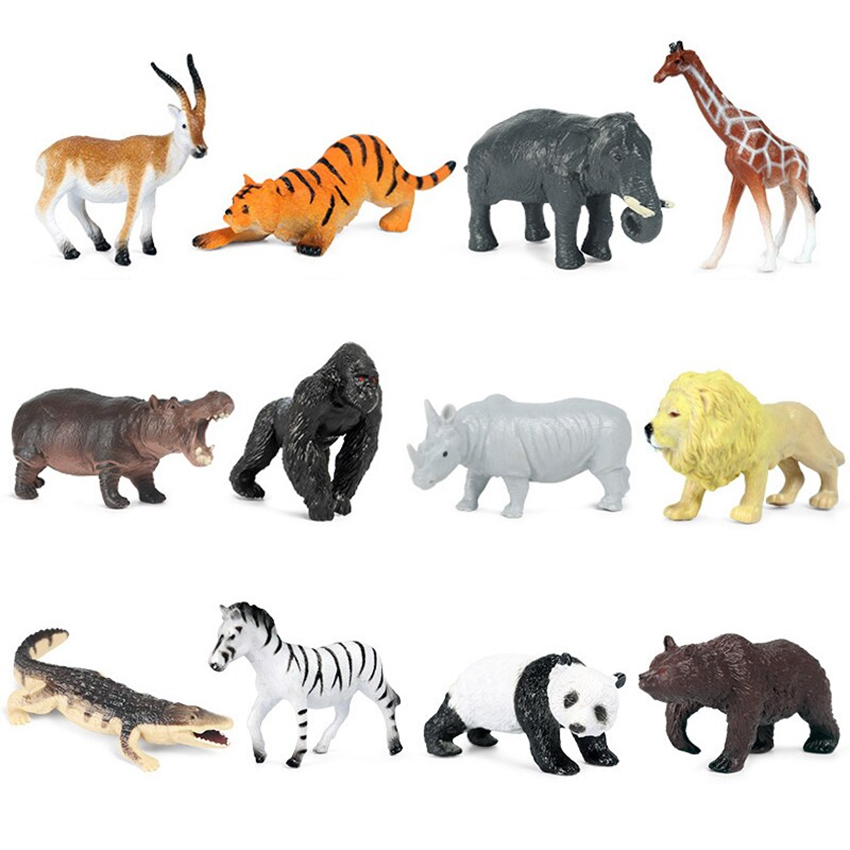Bộ 12 đồ chơi động vật hoang dã size trung 8 cm cho bé 3 tuổi New4all