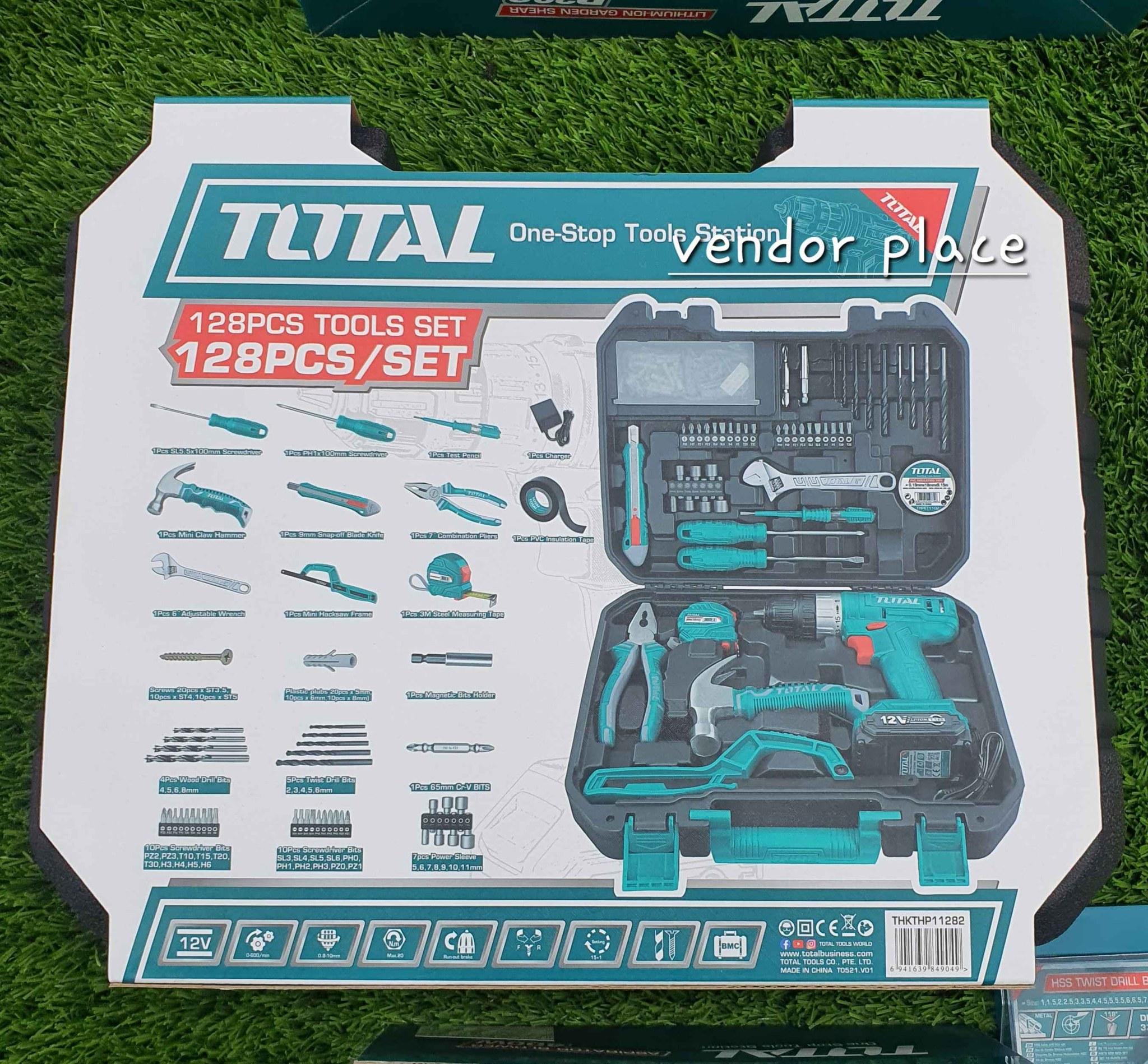 -Bộ 128 món gồm: 1 máy khoan dùng pin Lithium-Ion 12V/ 1.5Ah, model: TDLI1211,