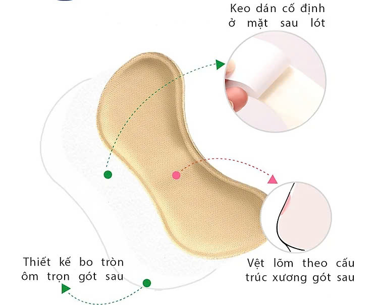 Với miếng lót gót chân bằng vải mềm mại mang cảm giác thoải mái và dễ chịu cho gót chân, dễ dàng làm sạch và tái sử dụng, thấm mồ hôi chân tố Thích hợp