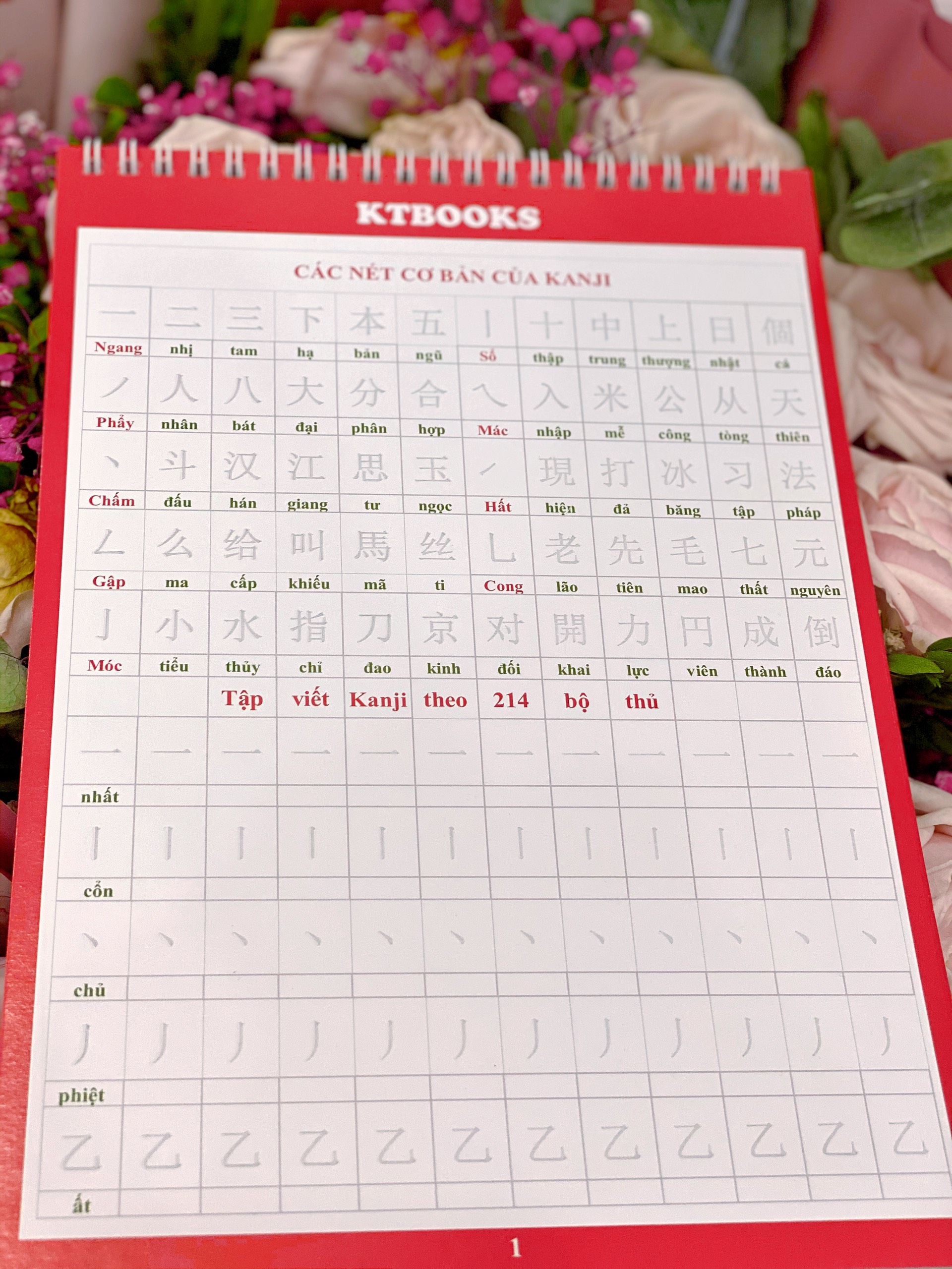 Có một điều mình muốn chia sẻ thêm là nên mua quyển luyện viết Kanji,nét chữ được khắc đậm và rõ ràng, có cột chữ viết mẫu ghi tên Hán Việt và nghĩa riêng.
