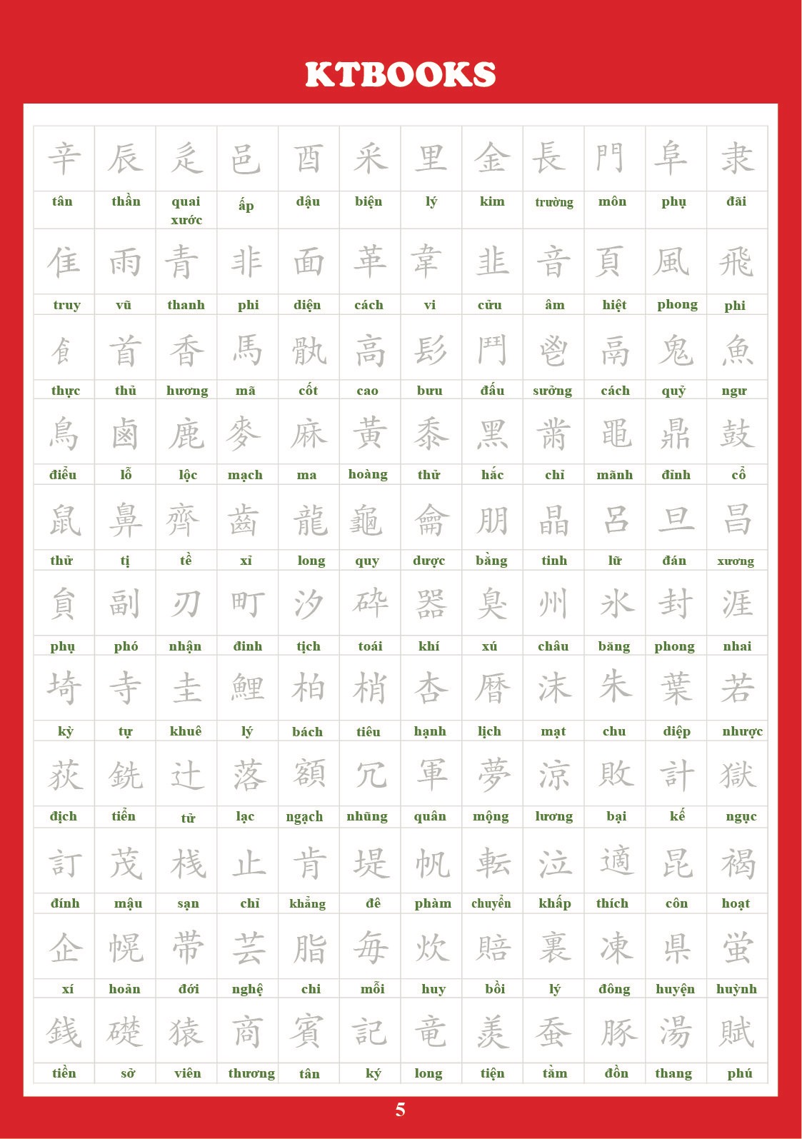 Bộ Luyện viết In chìm 1945 KANJI Tiếng Nhật và 214 Bộ thủ bao gồm: