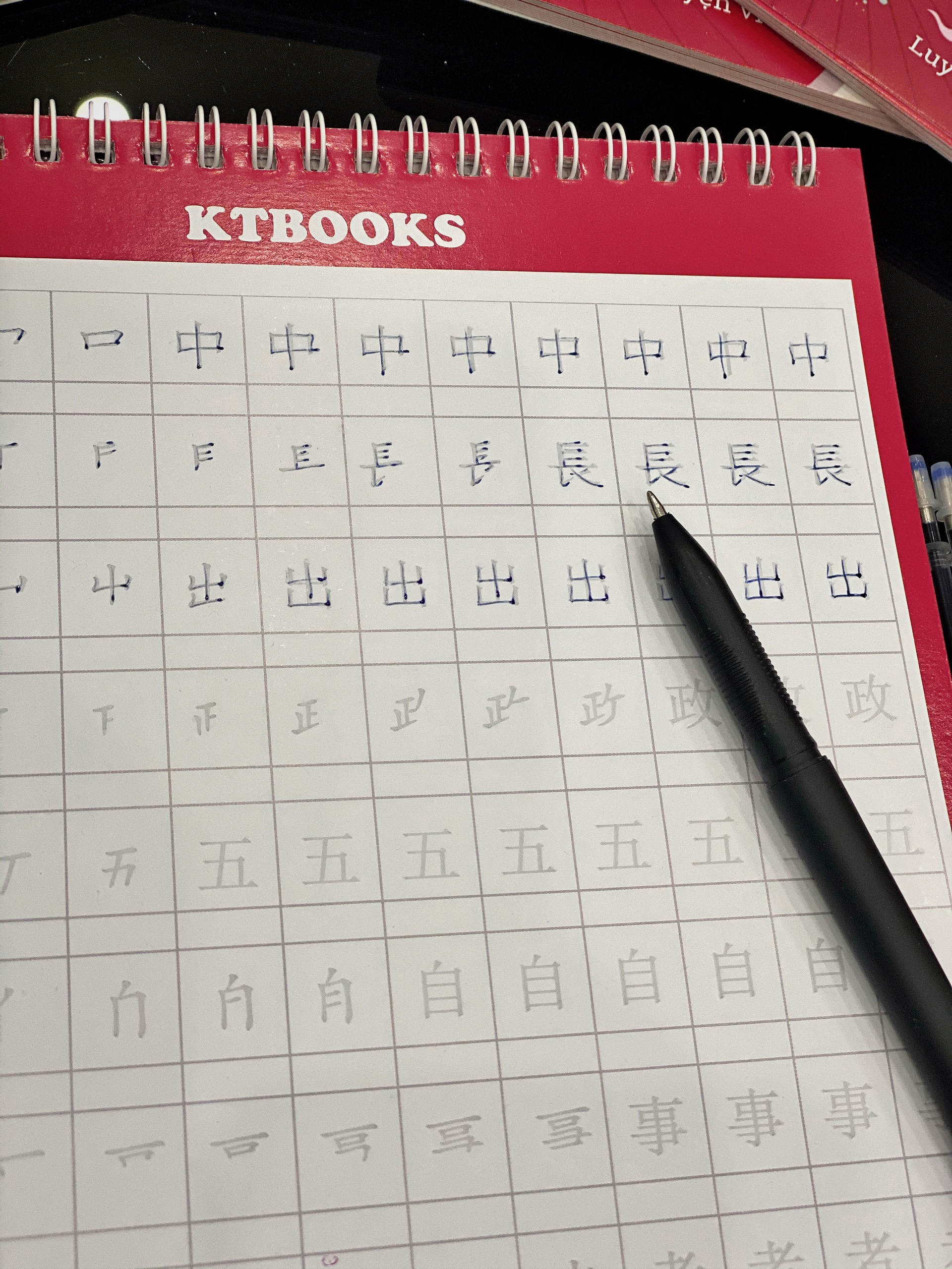 Học Kanji , chử Hán không chỉ đơn thuần để nhớ dùng, nhớ viết để đi thi và sử dụng, khi học lâu dài các bạn sẽ muốn nâng tầm lên không phải chỉ đúng mà còn phải viết đẹp, viết làm sao cho người ta trầm trồ, viết làm sao cho bản thân tự thấy hài lòng. Thật ra, thư pháp đã có từ rất lâu đời, không chỉ để khoe mẽ mà còn là một bộ môn nghệ thuật để rèn tính cách, thư giãn và thanh lọc tâm hồn. Dù bằng mục đích nào thì cũng phải luyện tập và nó đều có ích cả, không bây giờ thì sau này có lẽ bạn sẽ nhận được một cơ hội bất ngờ từ những kĩ năng bạn rèn dũa, chuẩn bị sẵn. Vậy luyện viết như thế nào? Công cụ là gì? Thời nay đã rất thuận tiện, không cần mất công tầm sư học đạo, lùng tìm mua bộ văn phòng tứ bảo, bạn có thể search internet cách viết nhưng hầu như không đầy đủ và các thầy chỉ cốt khoe chữ đẹp chứ học trên đấy thì khó bắt chước theo, tìm kiểu chữ chuẩn để luyện thì không có. May thay các bạn có thể học hỏi những người học Tiếng Trung mua bộ tập viết bằng giấy khắc chữ chìm, viết bằng loại bút đặc biệt mực bay. Cái này hay lắm nhé, bạn tô chữ lại như mẫu giống các bé lớp 1 ấy, viết được khoảng vài phút thì những chữ đã viết đã bay mực hết như chưa từng được tô lên. Bạn có thể luyện viết cả nghìn lần trong quyển ấy, tô đi tô lại những chữ mẫu cho quen tay sau đó tập viết ra giấy thường.