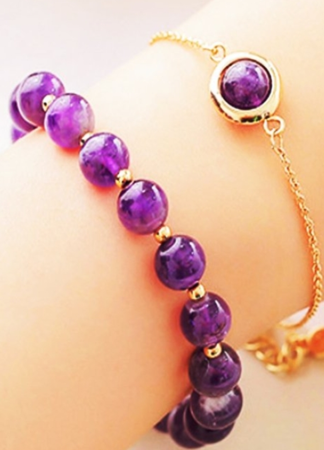 Bộ 2 vòng tay phong thủy đá thạch anh tím 8mm mix bi tròn cao cấp cho Nữ cầu Lộc Tài Duyên