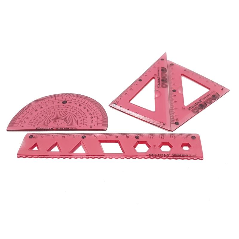 Bộ thước kẻ eke học sinh nhựa dẻo/ thước hình học 4 món Stacom FR102S các màu