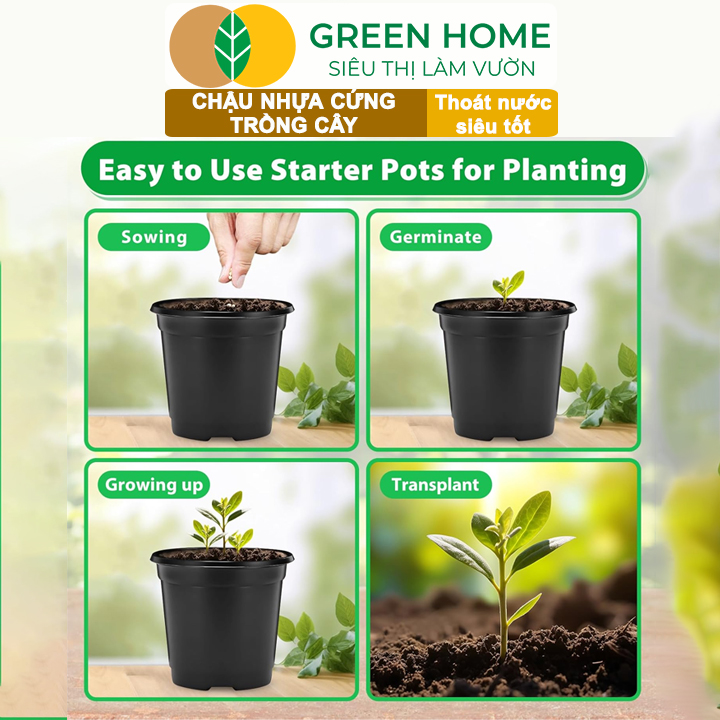 Mua tại TiktokChậu nhựa trồng cây, đa dạng kích thước, nhựa cứng, thoát nước tốt, trồng cây, hoa, kiểng lá |Greenhome ĐẶC ĐIỂM NỔI BẬT: - Chậu nhựa cứng thoát nước tốt là giải pháp hoàn hảo cho các loại cây ngoài trời trong nhà, hoa, cây xương rồng, cây con, cành giâm và cây con. - Linh hoạt không gian, tái sử dụng lâu dài: Chậu nhựa cứng có trọng lượng nhẹ, có thể tái sử dụng lâu dài theo thời gian - Thiết kế tiện vợi với vành nhô cao cho phép bạn cầm và xếp các chậu một cách dễ dàng. Các lỗ ở phía dưới đảm bảo thoát nước thích hợp, đồng thời cho phép cây thở tự do. - Sử dụng rộng rãi: Chậu này hoàn hảo để trồng cây ngoài trời trong nhà, rau, hoa, ươm trồng chuyên nghiệp, làm vườn. Bạn có thể sử dụng chúng trong sân, vườn, hiên nhà, nhà kính và hơn thế nữa. Chậu nhựa trồng cây, nhựa cứng thoát nước tốt là giải pháp hoàn hảo cho các loại cây ngoài trời trong nhà, hoa, cây xương rồng, cây con, cành giâm và cây con. Chậu nhựa trồng cây, nhựa cứng linh hoạt không gian, tái sử dụng lâu dài: Chậu nhựa cứng có trọng lượng nhẹ, có thể tái sử dụng lâu dài theo thời gian Chậu nhựa trồng cây, nhựa cứng thiết kế tiện vợi với vành nhô cao cho phép bạn cầm và xếp các chậu một cách dễ dàng. Các lỗ ở phía dưới đảm bảo thoát nước thích hợp, đồng thời cho phép cây thở tự do. MÔ TẢ SẢN PHẨM: - Chất liệu hạt nhựa PP độ bền cao. - Loại nhựa dày , bền bĩ . - Đáy thoát nước tốt , có khoảng trống cách sàn giúp không úng nước. - Giá thành rẻ do sản xuất hàng loạt . - Đa dạng kích thước, phù hợp các loại rau củ , cho đến các loại cây kiểng , hồng ... - Chậu phù hợp với nhiều không gian, bàn làm việc, phòng ngủ, ban công, sân vườn,… - Nhiều kích thước để lựa chọn. - Chậu có khối lượng nhẹ thích hợp cho để trên mặt đất hoặc treo trên cao. Chậu nhựa trồng cây, nhựa cứng sử dụng rộng rãi: Chậu này hoàn hảo để trồng cây ngoài trời trong nhà, rau, hoa, ươm trồng chuyên nghiệp, làm vườn. Bạn có thể sử dụng chúng trong sân, vườn, hiên nhà, nhà kính và hơn thế nữa. Chậu nhựa trồng cây, nhựa cứng có đáy thoát nước tốt , có khoảng trống cách sàn giúp không úng nước. Cách sử dụng: - Đổ đất vào trồng trực tiếp, không cần phải xử lý thoát nước. Chậu nhựa trồng cây, nhựa cứng giá thành rẻ do sản xuất hàng loạt. Đa dạng kích thước, phù hợp các loại rau củ , cho đến các loại cây kiểng , hồng ... Chậu nhựa trồng cây, nhựa cứng phù hợp với nhiều không gian, bàn làm việc, phòng ngủ, ban công, sân vườn,… BẢO HÀNH: đổi mới hoàn toàn bất kể lỗi do vận chuyển, sản xuất. UY TÍN: - Sản phẩm y như hình ảnh - Dịch vụ nhanh, chất lượng sản phẩm luôn được quan tâm SIÊU THỊ LÀM VƯỜN GREENHOME Đầy Đủ Vật Tư - Giao Nhanh Hoả Tốc