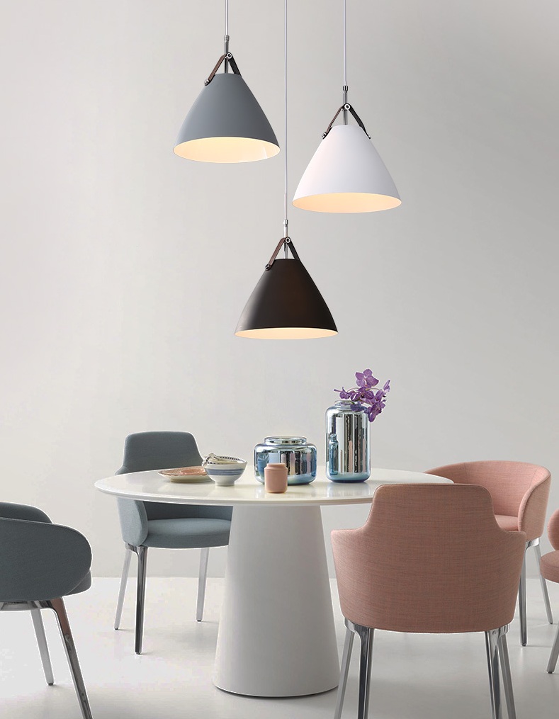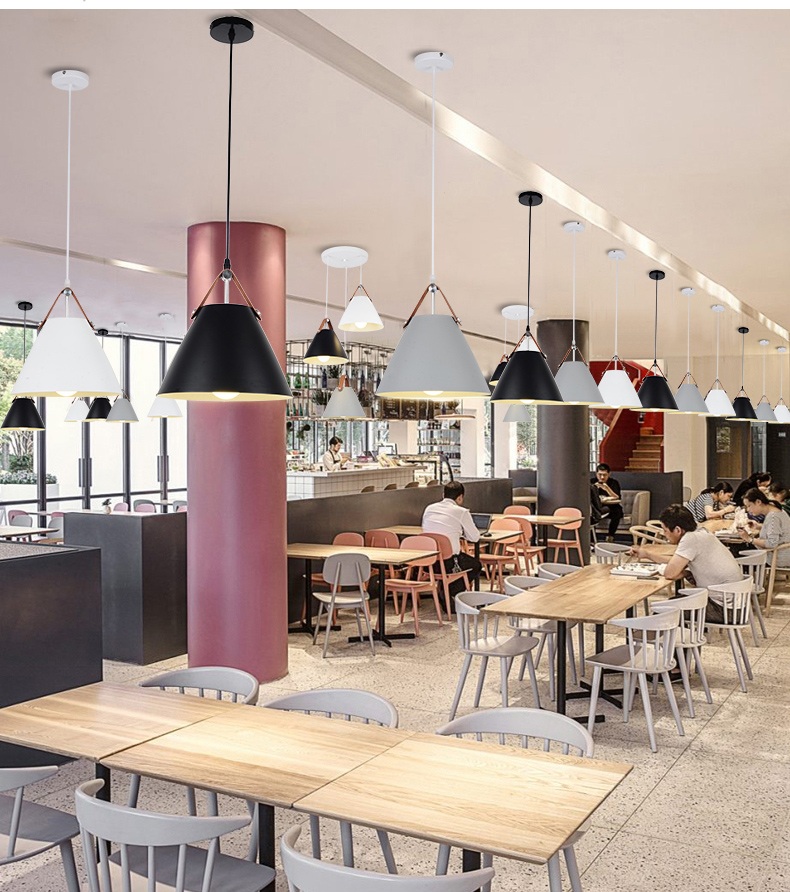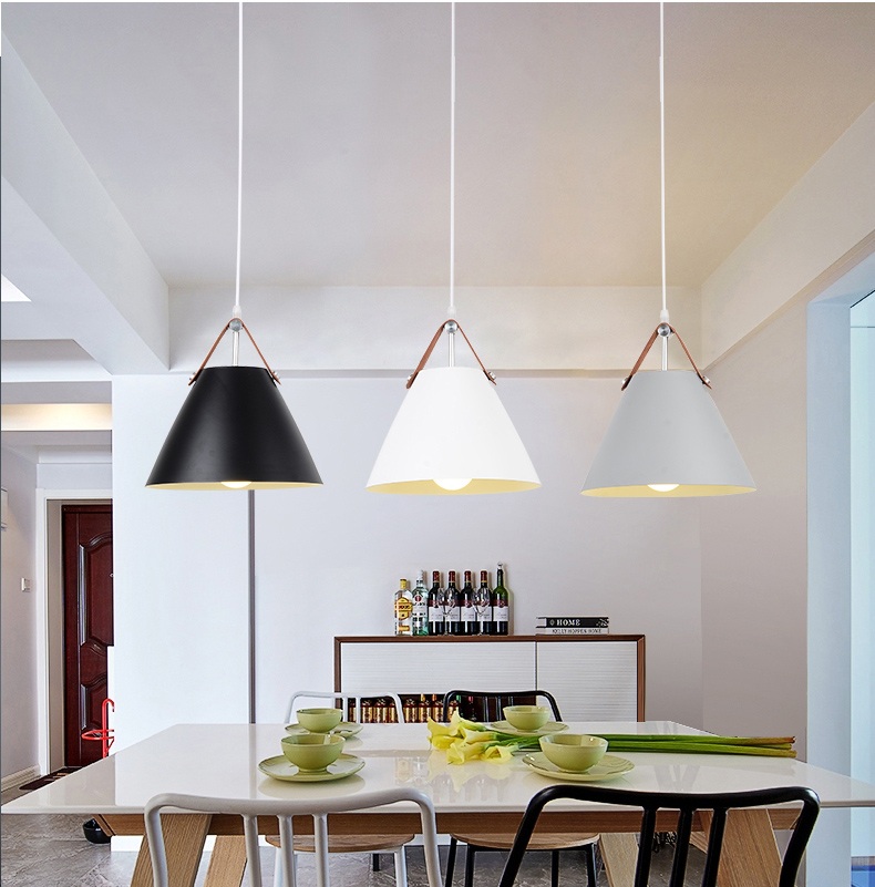 Để không gian phòng ăn của gia đình trở nên lung linh và ấm áp hơn thì hiện nay, rất nhiều người đã nhờ đến sự trợ giúp của những mẫu đèn trang trí. Với mỗi không gian khác nhau thì việc lựa chọn đèn trang trí là không giống nhau bởi bạn cần lựa chọn sao cho phù hợp với không gian cũng như đảm bảo được khả năng chiếu sáng cần thiết cho quá trình sinh hoạt. Hiện nay có 2 dòng sản phẩm đèn trang trí phòng ăn được sử dụng phổ biến trong không gian nội thất phòng ăn đó là đèn thả và đèn chùm. Đèn thả trần kiểu dáng hiện đại là hàng nhập khẩu cao cấp với chất lượng được đảm bảo theo tiêu chuẩn Châu Âu. Chất liệu nhôm lựa chọn chế tạo nên sản phẩm có ưu điểm vượt trội về khả năng chống hao mòn, ôxy hóa, giữ sản phẩm lâu bền cùng thời gian.  Công nghệ chiếu sáng hiện đại của bóng đèn led giúp cho đèn bàn ăn đẹp cung cấp ánh sáng đều màu, ổn định trng khoảng diện tích từ 10-15m2 mà không bị chập chờn, chớp nháy gây ảnh hưởng đến thị giác người nhìn. Hơn nữa, chúng còn làm nổi bật lên vẻ đẹp của các món ăn từ đó thu hút các thành viên trong gia đình quây quần lại thưởng thức. THÔNG TIN KÍCH THƯỚC 30*27 (cm) Chân đèn bằng kim loại sơn tĩnh điện, choá đèn bằng nhôm hình phễu có tác dụng hội tụ ánh sáng cao ,thường được sử dụng vào vị trí bàn ăn Dây đèn điều chỉnh theo độ cao trần , choá đèn có thể để 3 cái bằng nhau đối với ray ngang Sử dụng đui E27 , dễ thay thế bóng ,thay đổi công suất phù hợp cho từng vị trí láp (bàn ăn cần công suất lớn hơn đối với các vị trí khác) Bộ đèn đã bao gồm bóng LED chuyên dụng