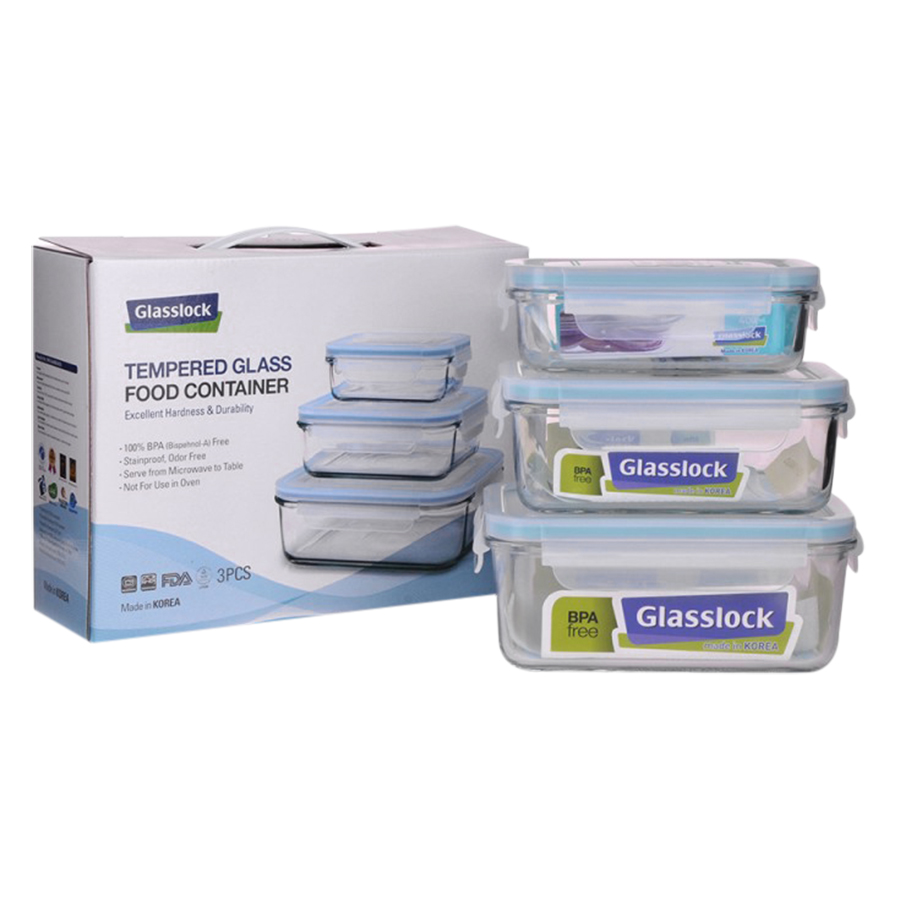 Bộ 3 Hộp Thủy Tinh Hình Chữ Nhật Glasslock GL1044 (400 + 695 + 1090 ml)Bộ 3 Hộp Thủy Tinh Hình Chữ Nhật Glasslock GL1044 (400 + 695 + 1090 ml)