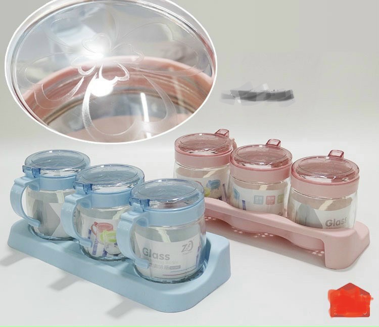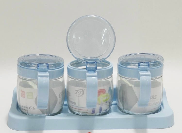 ✨Bộ 3 hũ đựng gia vị thủy tinh nắp nhựa ( Giao màu nẫu nhiên ) - ANTH677