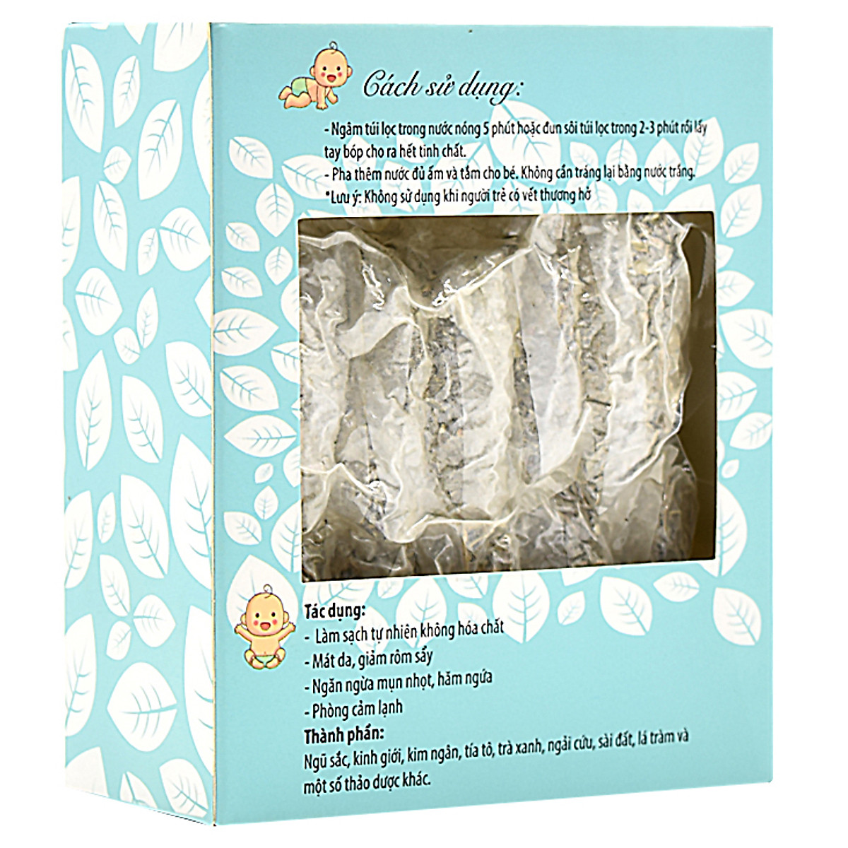 - Ngăn ngừa mụn nhọt, hăm ngứa. Túi lọc thảo mộc tắm bé Wonmom 200g với các thảo mộc 100% thiên nhiên tuyệt đối an toàn, không chất bảo quản nên rất tiện lợi cho mẹ, an toàn cho bé. Thành phần: Ngũ sắc, canh giới, kim ngân, tía tô, trà xanh, ngải cứu, sài đất, lá tràm và một số thảo mộc khác Công dụng