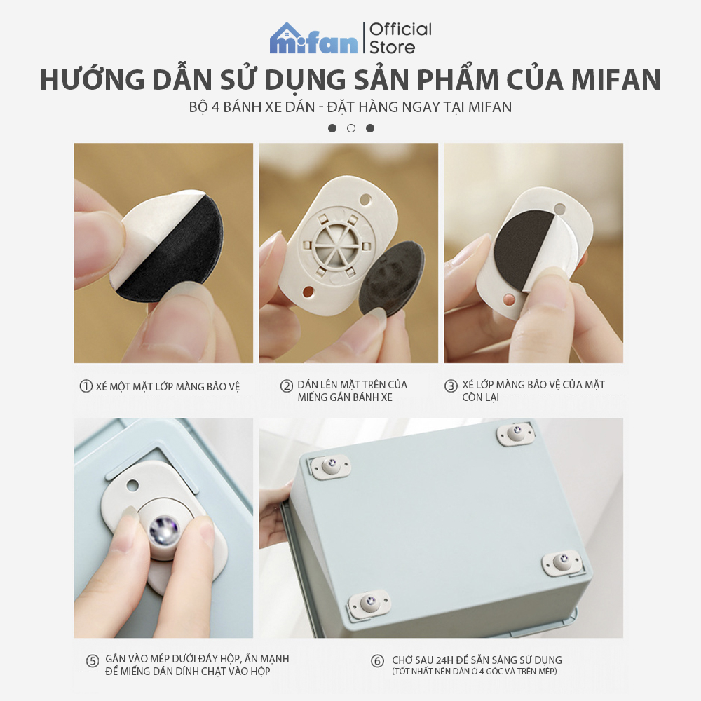 ✨Bộ 4 Bánh Xe Dán MIFAN Di Chuyển Thùng, Hộp - Xoay 360 Độ, Nhựa ABS Siêu Bền, Chịu Lực