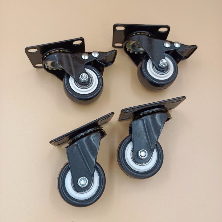Bộ 4 bánh xe đẩy hàng (2 xoay có khóa - 2 xoay không khóa) loại tốt Kt 50x25 mm - Tải trọng 150kg - Di chuyển đa mặt sàn - Gồm 2 bánh xoay