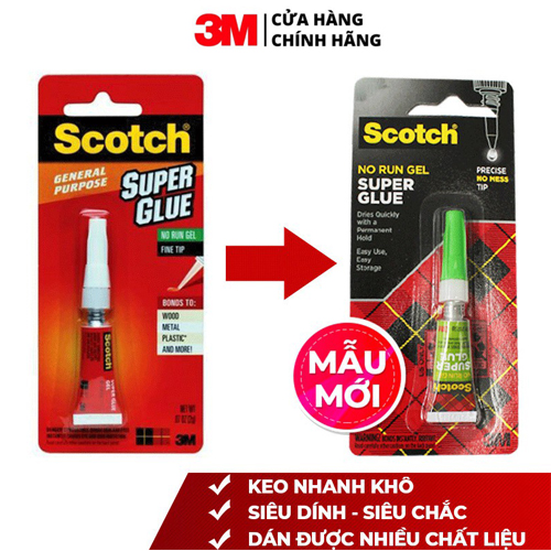 Mua tại TiktokKeo dán đa năng nhanh khô 3M Scotch Super Glue AD113 2g Bạn có một đôi giày giá trị cao nhưng đôi giày bị hở keo và bạn không biết dùng loại keo nào để dán. Bạn không nên dùng keo 502 để dán, sẽ làm hư giày bạn đấy. Lúc này Keo dán đa năng nhanh khô 3M Scotch Super Glue AD113 2g chính là cứu tinh cho chúng không những giúp bạn dán lại đôi giày mà còn đảm bảo tính thẩm mỹ cao. Bởi sản phẩm Keo dán đa năng nhanh khô 3M Scotch Super Glue AD113 2g được thiết kế với đầu tuýp keo nhỏ, giúp bạn dán chính xác, là loại keo NO RUN GEL rất đặc biệt, keo sệt và không lỏng như những sản phẩm keo thông thường khác nên thao tác với nó vô cùng dễ. Công dụng: