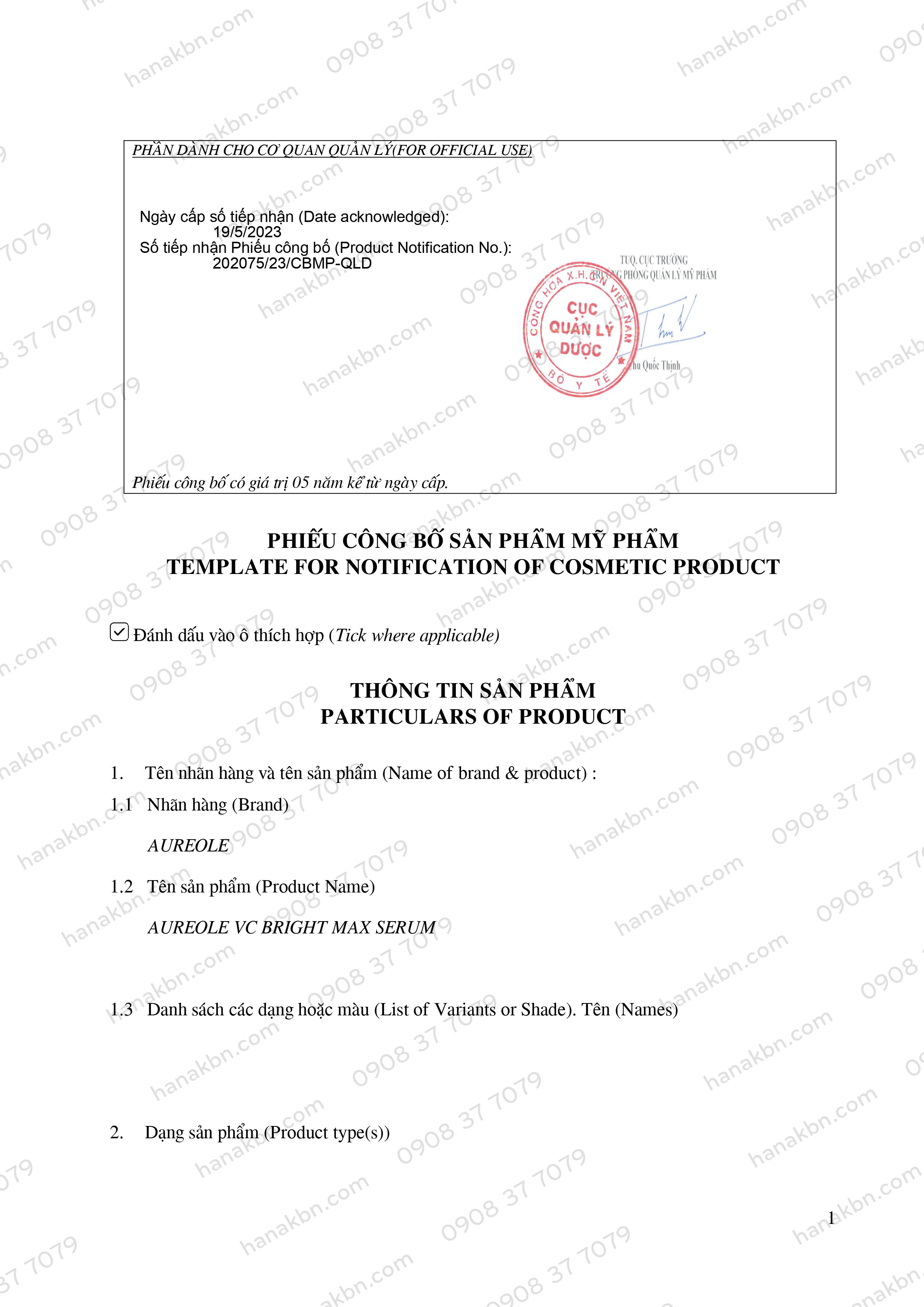 Serum dưỡng trắng tái tạo da: - Thành phần: Aqua, Aloe Barbadensis Leaf Juice, Glycerin, Triethanolamine (1,0 %), Phellodendron Amurense Bark Extract, Carbomer, Tocopheryl Acetate, Hydrolyzed Collagen, Boric Acid (0,5 %), Salicylic Acid (0,2 %),