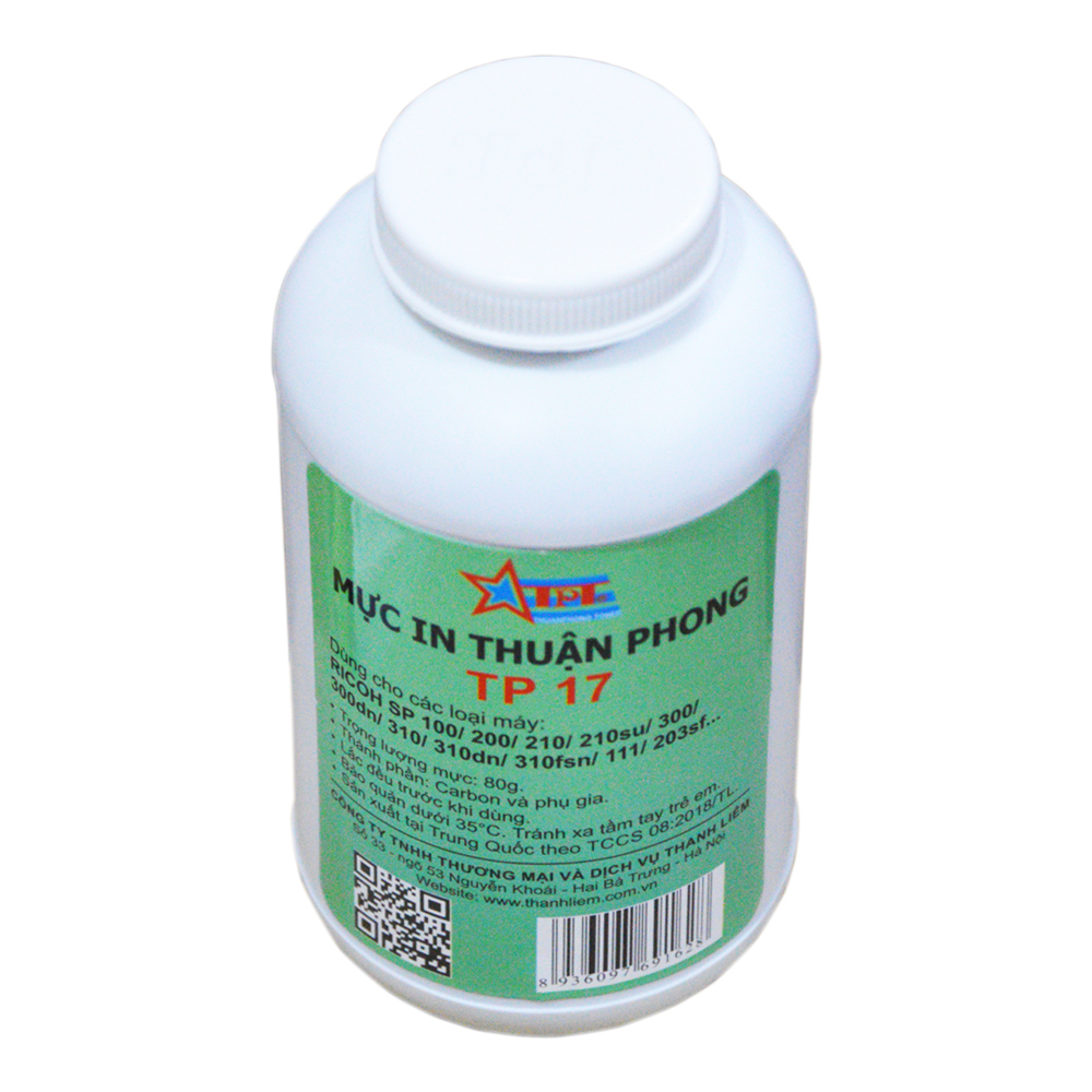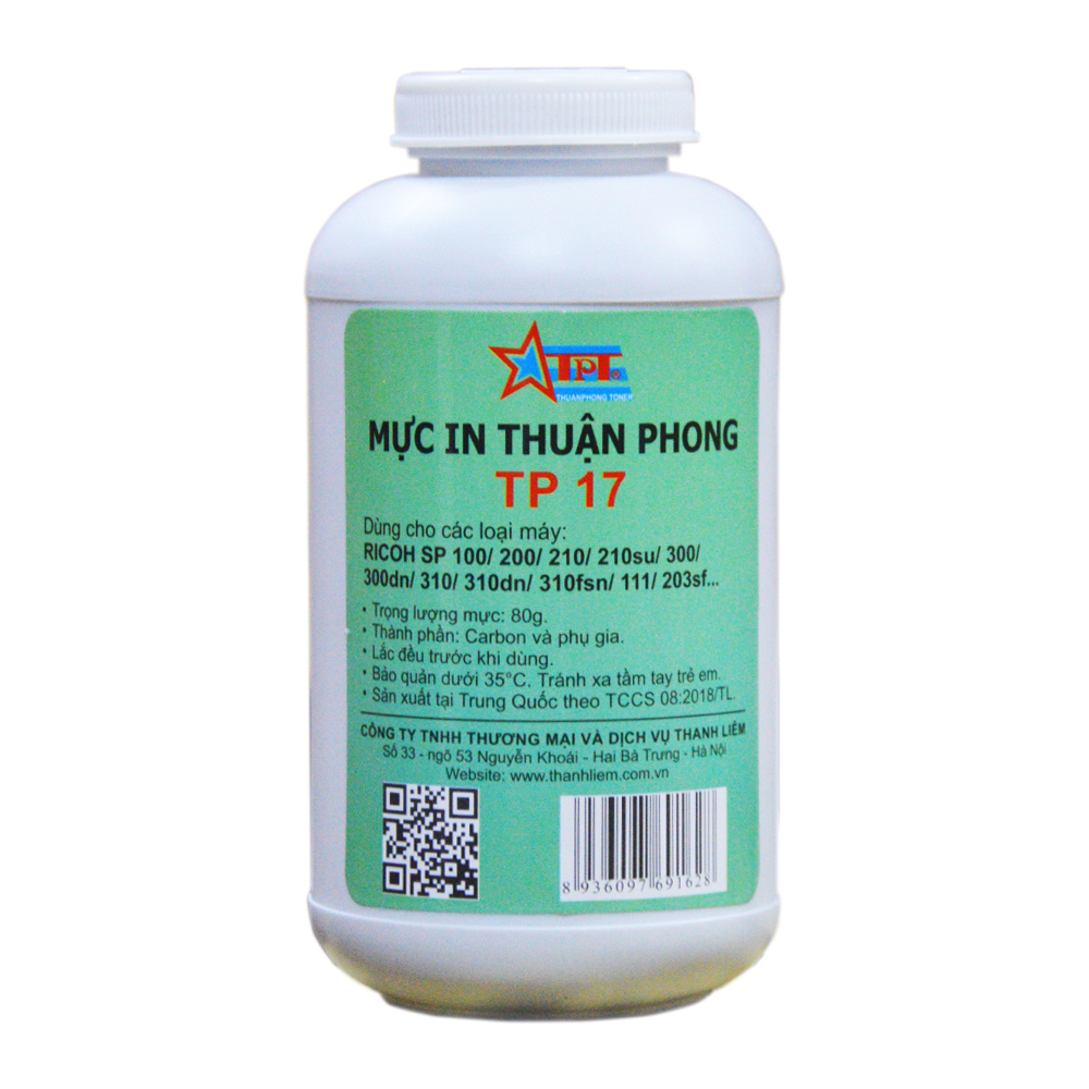 Mực đổ Thuận Phong TP17 dùng cho các dòng máy sau: - Ricoh Aficio SP 100 / 100su / 100sf - Ricoh Aficio SP 110 / 110su / 111 / 111su - Ricoh Aficio SP 112