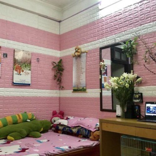 ✨Bộ 5 Tấm Xốp Dán Tường 3D Giả Gạch Màu Hồng Nhạt 70cmx77cm