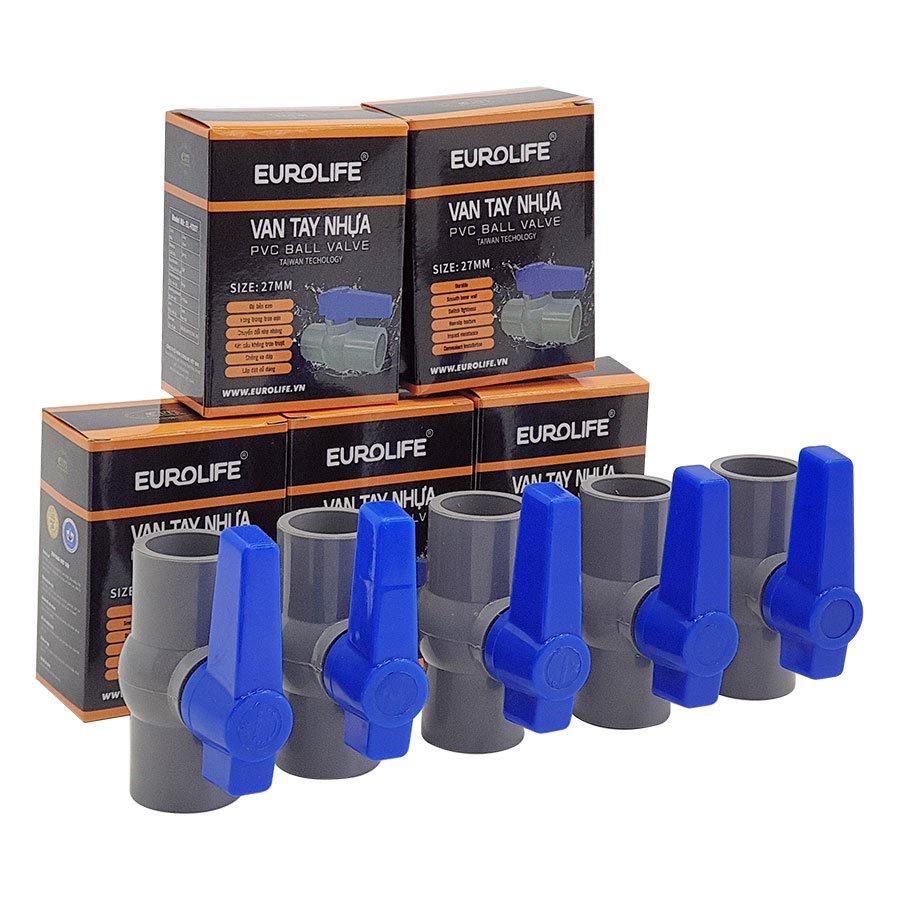 Van uPVC đúc bi nhựa ABS Eurolife size từ 21mm tới 90mm. Van đóng mở nhẹ phù hợp các loại ống nước.