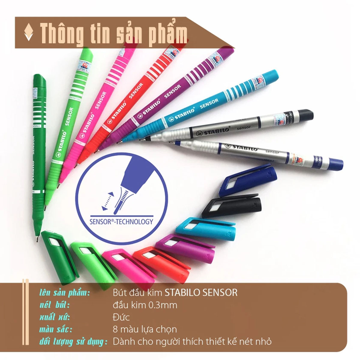 - Đầu kim nét 0.3mm cho nét viết thanh mảnh