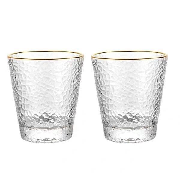 ✨Bộ 6 cốc loe thấp thủy tinh viền vàng vân sần 300ml