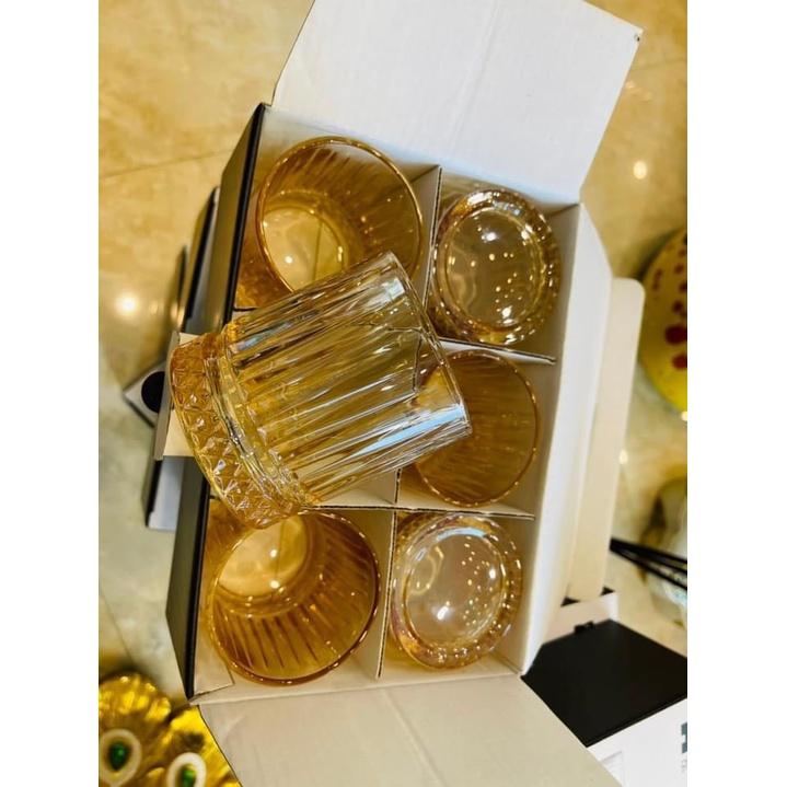 ✨Bộ 6 cốc thủy tinh uống nước hoặc rượu tây màu vàng Gold sang trọng