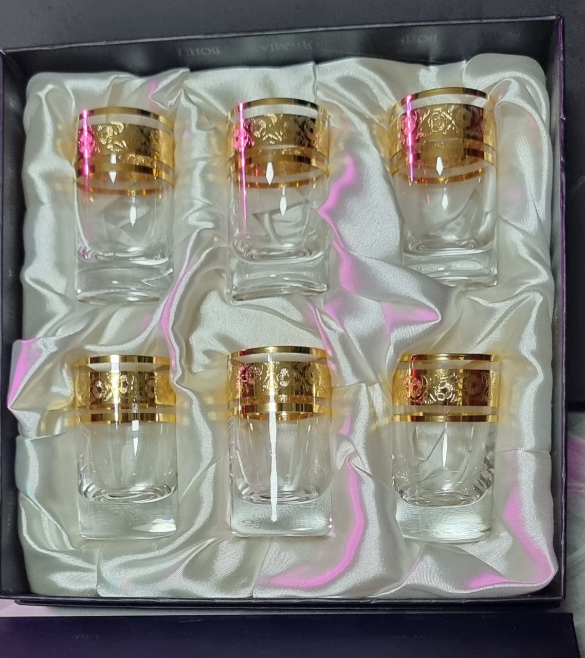 Bộ 6 ly rượu mạnh 050 ml mài nho viền vàng 24k Tiệp khắc !