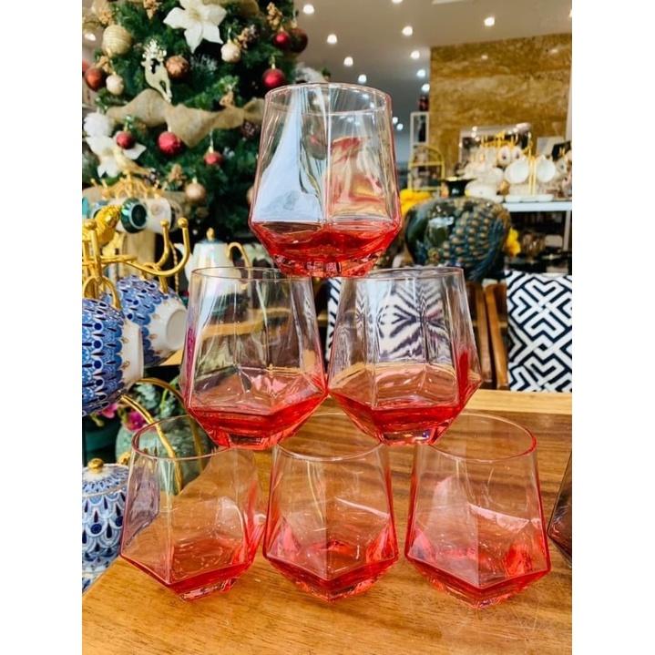 ✨Bộ 6 ly thủy tinh chịu nhiệt cao cấp dùng uống nước hoặc rượu tây vân kim cương vàng chanh