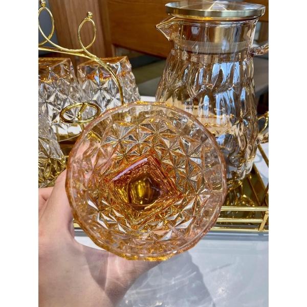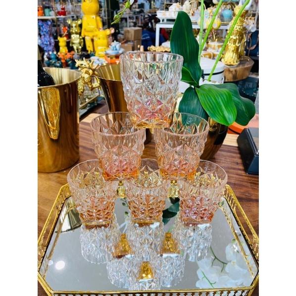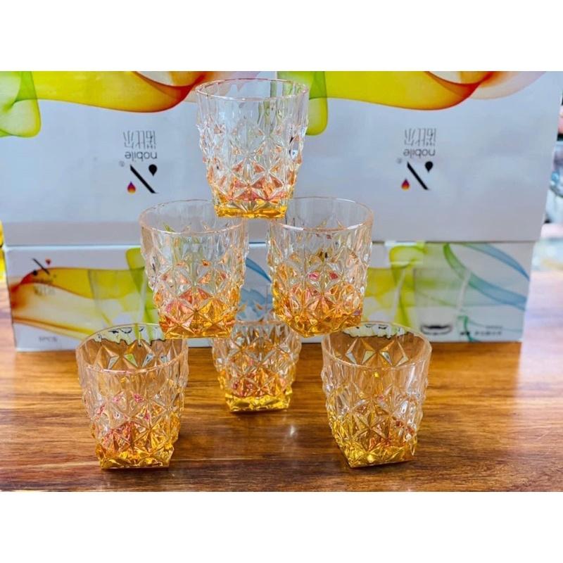 ✨Bộ 6 ly thủy tinh chịu nhiệt uống nước vân sao đáy vát cam