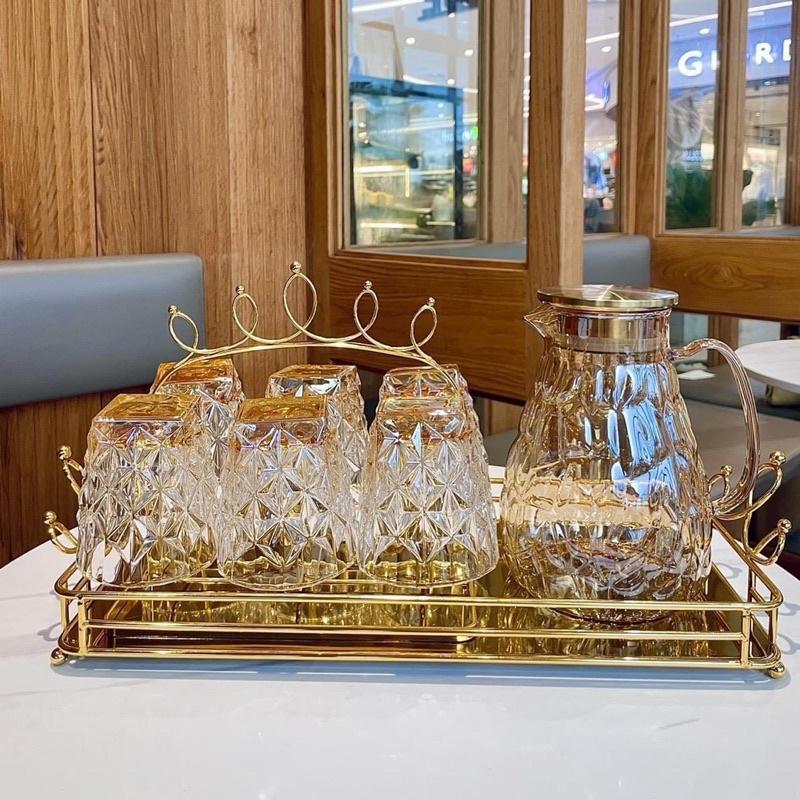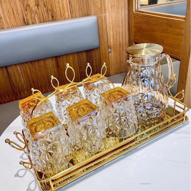 Chất liệu: thủy tinh Bộ sản phẩm gồm: 6 cốc thủy viền vàng Thiết kế đẹp mắt, phù hợp tiện dụng Độ bền cao, chịu nhiệt tốt, hạn chế nứt vỡ do tác động của