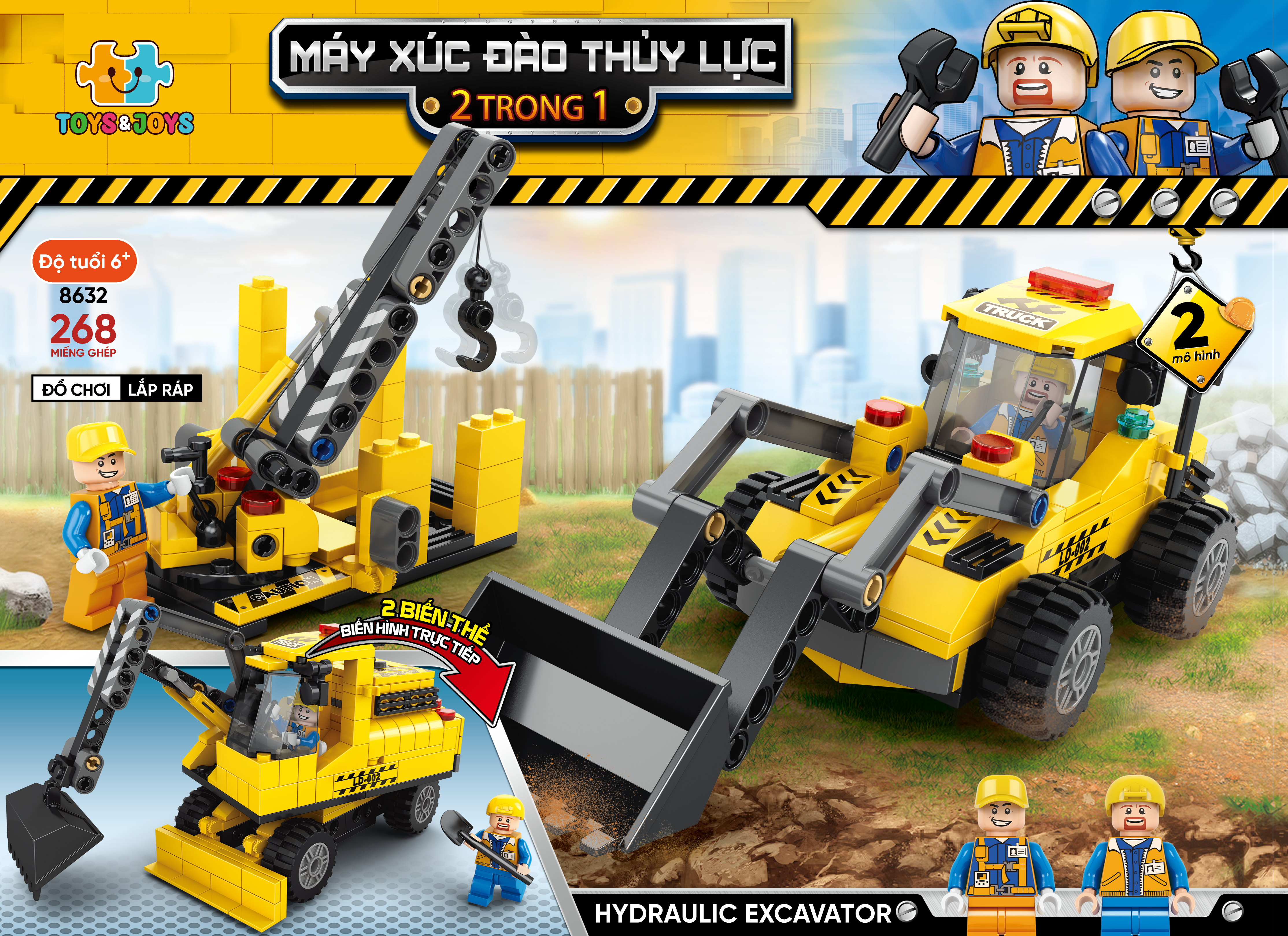 Đồ Chơi Lắp Ráp Xe Công Trình 6 Trong 1 - Construction Vehicle - Toys&Joys 8832-2 (1000 Mảnh Ghép) - Bộ đồ chơi bao gồm 1000 mảnh ghép, chất liệu nhựa ABS cao cấp, an