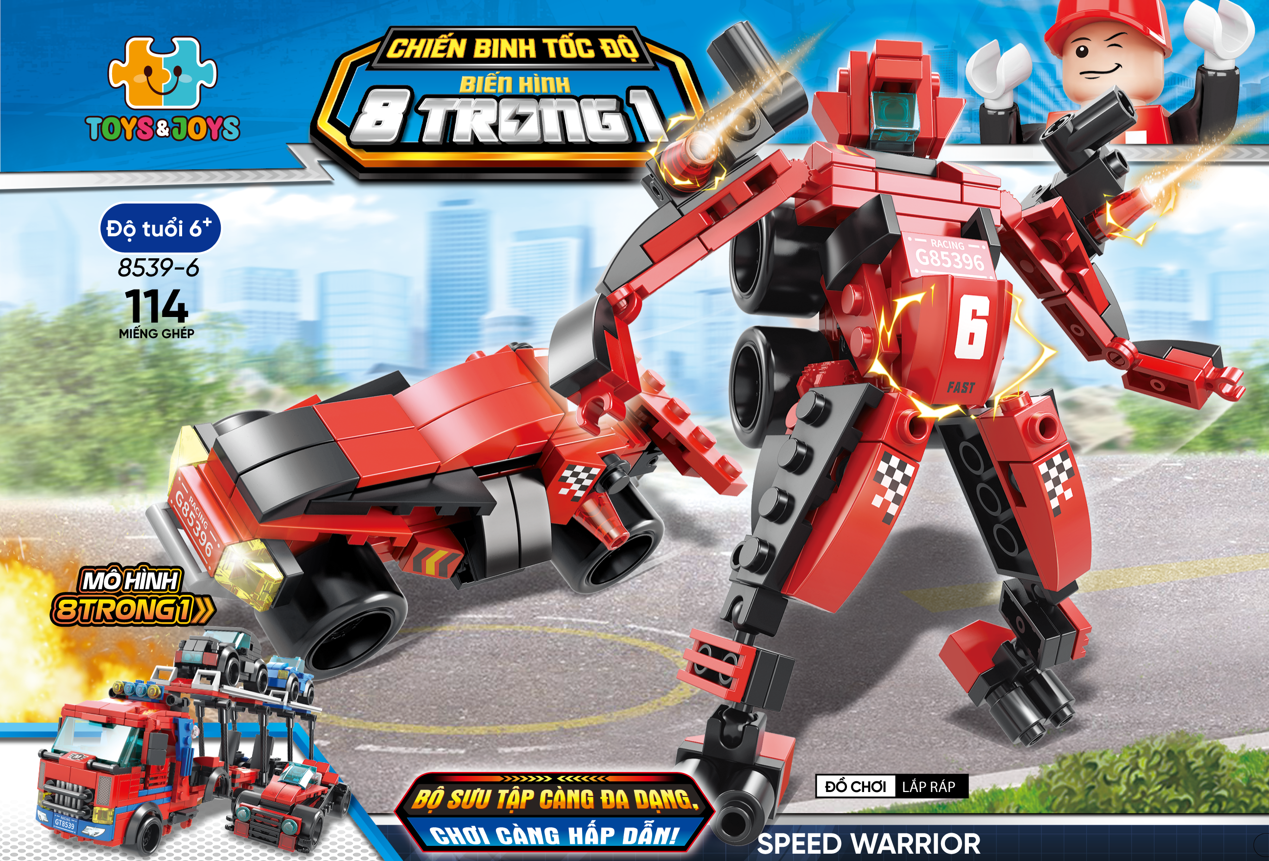 Bộ 8 Đồ Chơi Lắp Ráp Chiến Binh Tốc Độ Biến Hình 8 Trong 1 - Speed Warrior - Toys&Joys 8539 (886 Mảnh Ghép) - Chiến binh tốc độ biến hình 8 trong 1 –