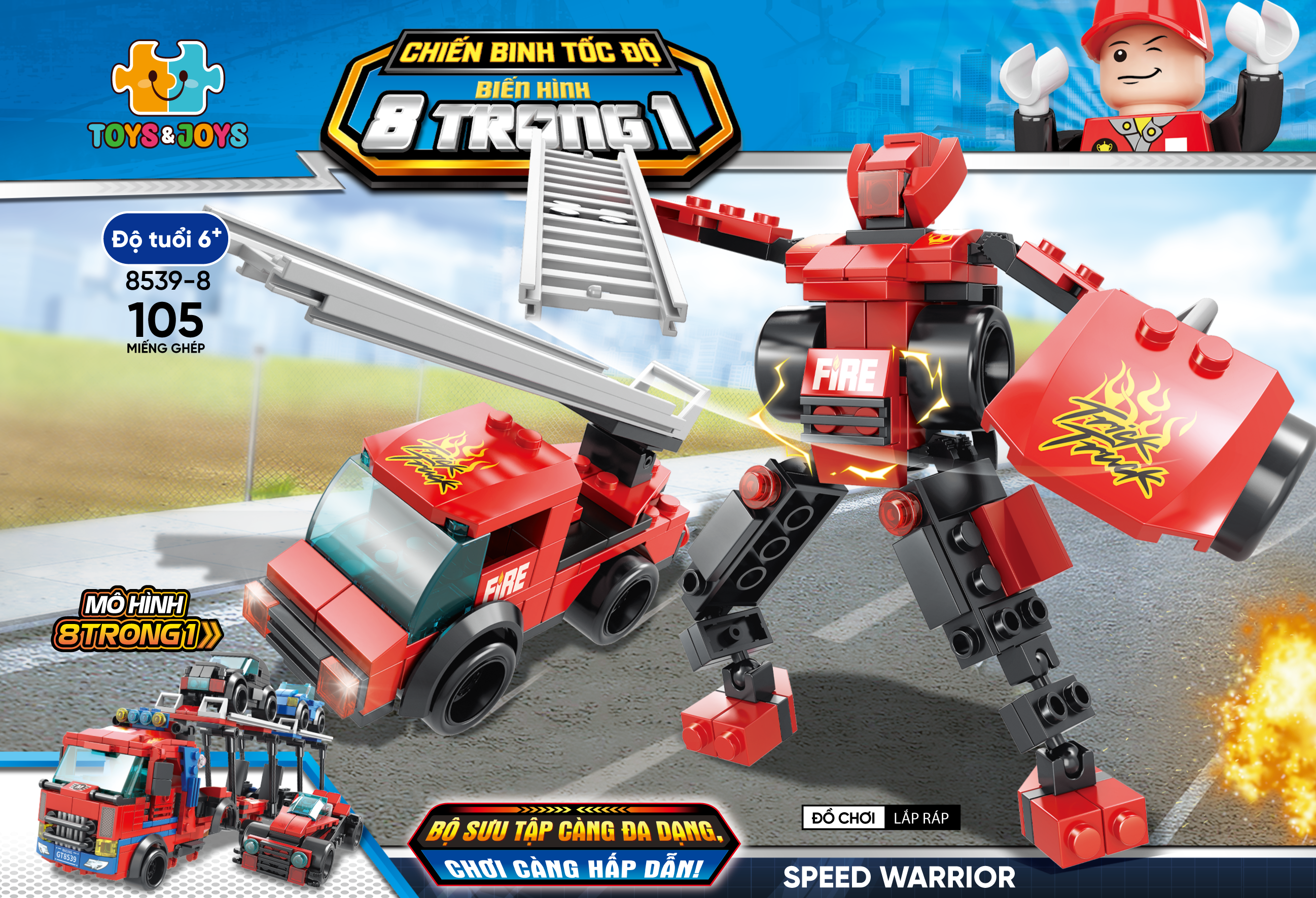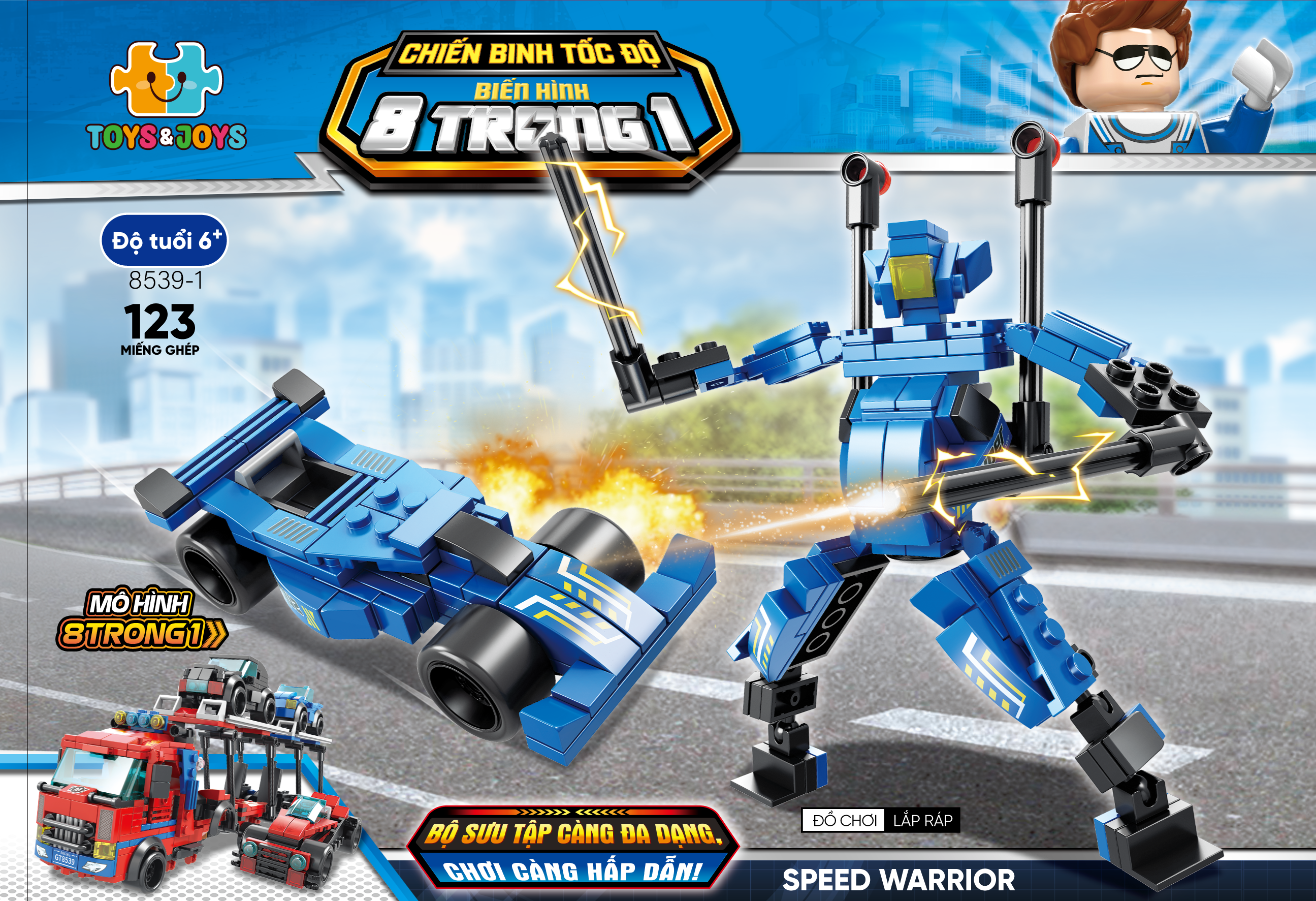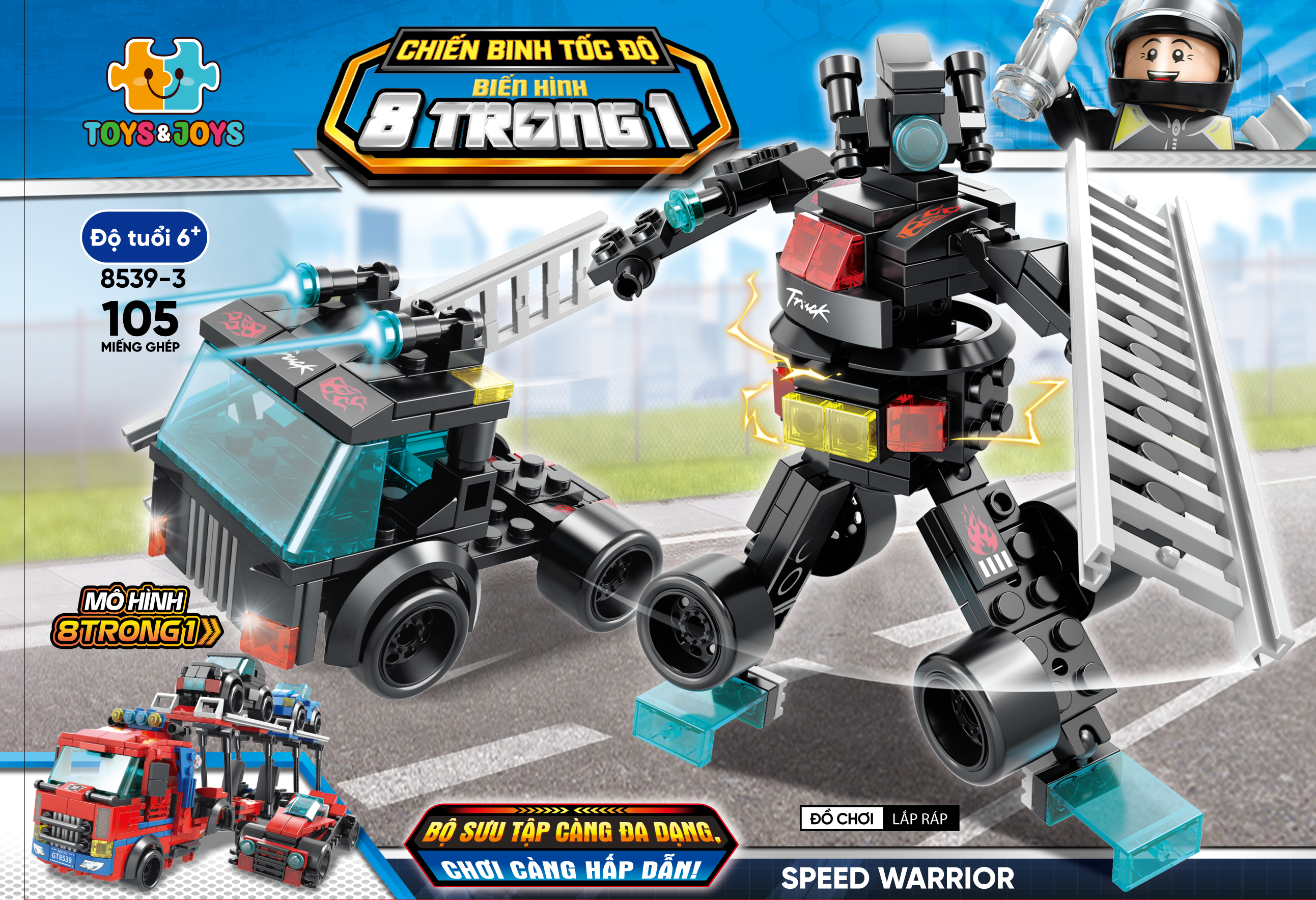 ✨Bộ 8 Đồ Chơi Lắp Ráp Chiến Binh Tốc Độ Biến Hình 8 Trong 1 - Speed Warrior - Toys&Joys 8539 (886 Mảnh Ghép)