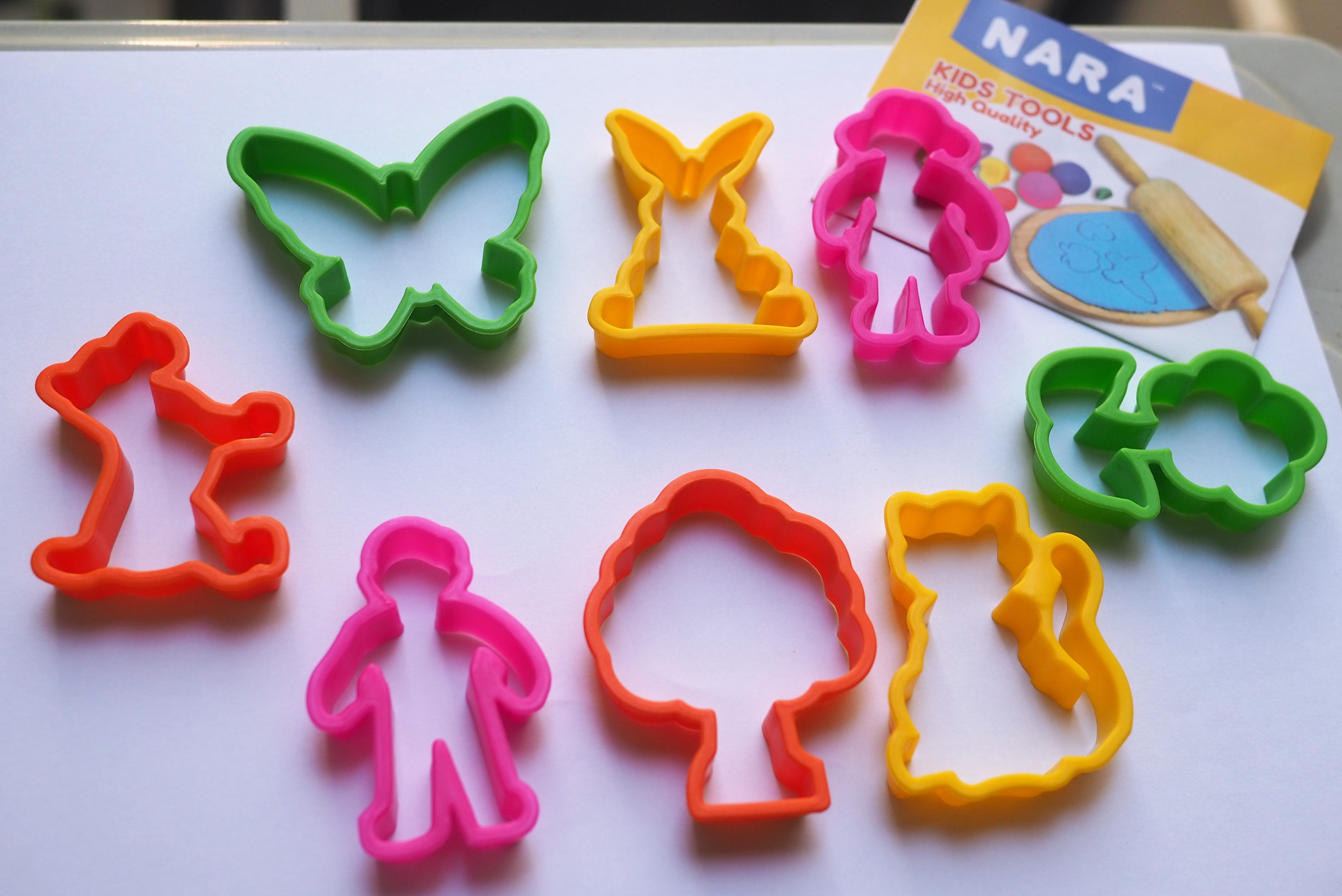 Bộ 5 dao cắt đa dạng, kèm hình minh họa cách sử dụng, giúp con thỏa thích tạo hình.  Sản phẩm dành cho trẻ từ 4 tuổi trở lên (vì dù dao không sắc nhưng