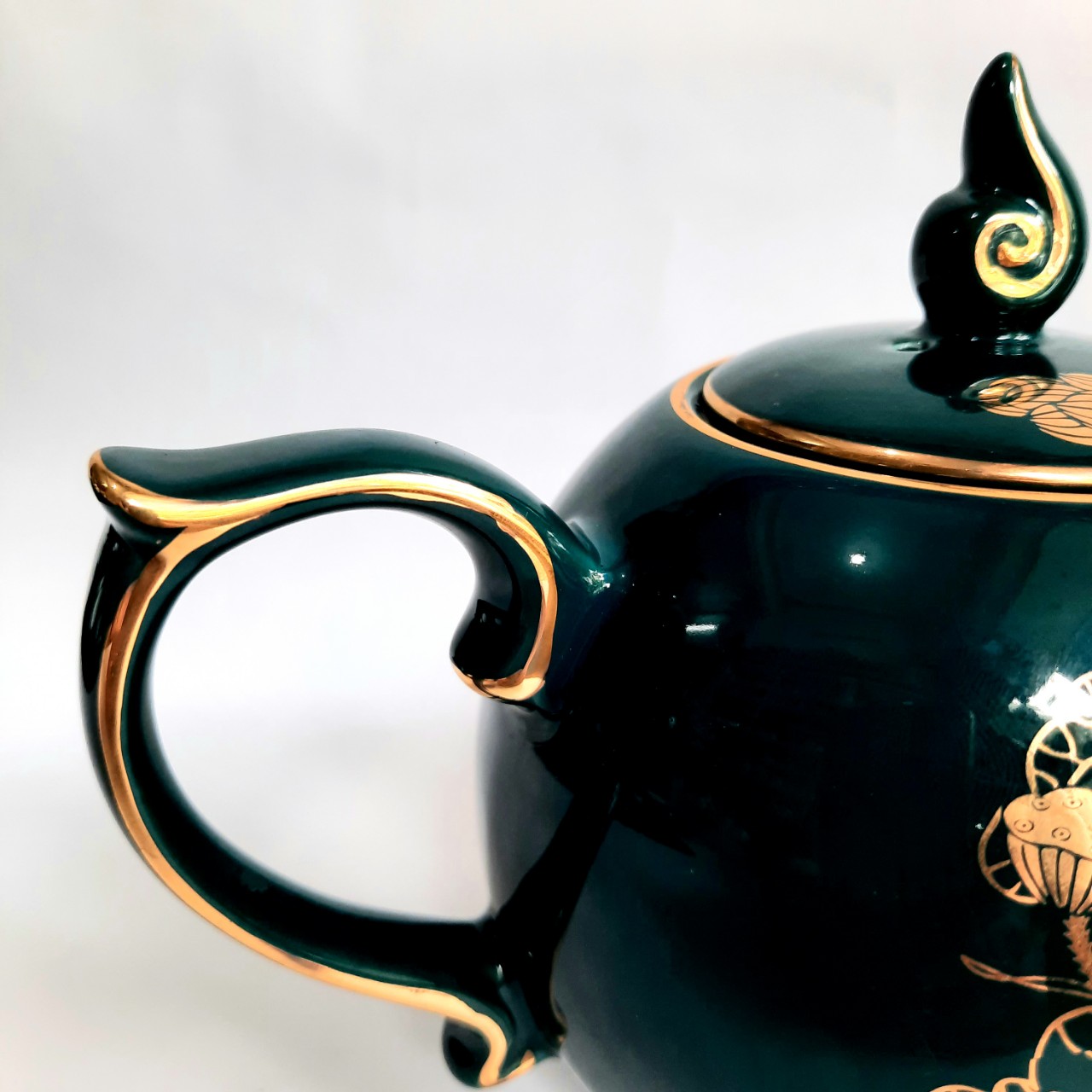 Bộ ấm chén Phú Quý vẽ vàng Phúc -Lộc -Thọ Dáng ấm cực kỳ sang chảnh Màu men rêu lạ mắt độc đáo Hàng ngoài đẹp mê li luôn khách nhé Dung tích ấm: 450ml