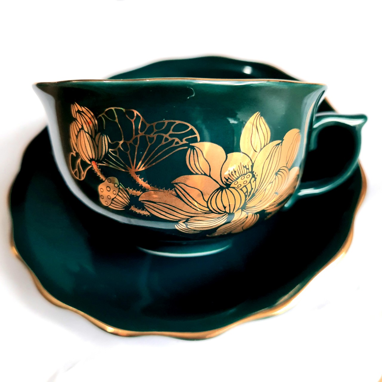 BỘ ẤM CHÉN HOÀNG GIA HỌA TIẾT HOA SEN TINH TẾ - THẢO DƯỢC BẢO KHÁNH
