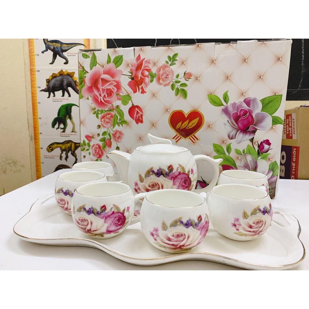 ✨BỘ ẤM CHÉN CÓ KHAY LOẠI ĐẸP HOA HỒNG, BỘ ẤM CHÉN PHA TRÀ CAO CẤP CÓ KHAY