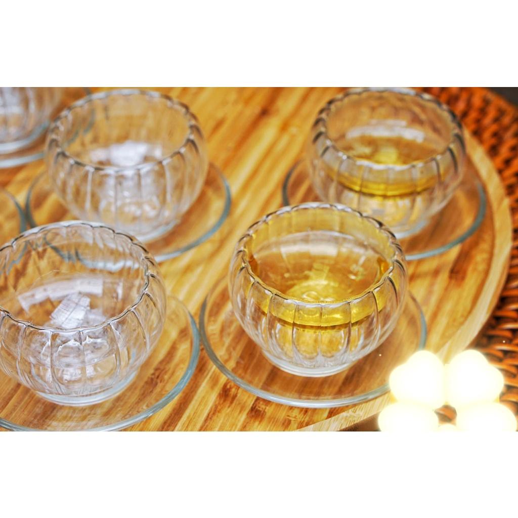 06 chén thủy tinh: thiết kế dạng chén trà đạo, đế 2 lớp cách nhiệt.