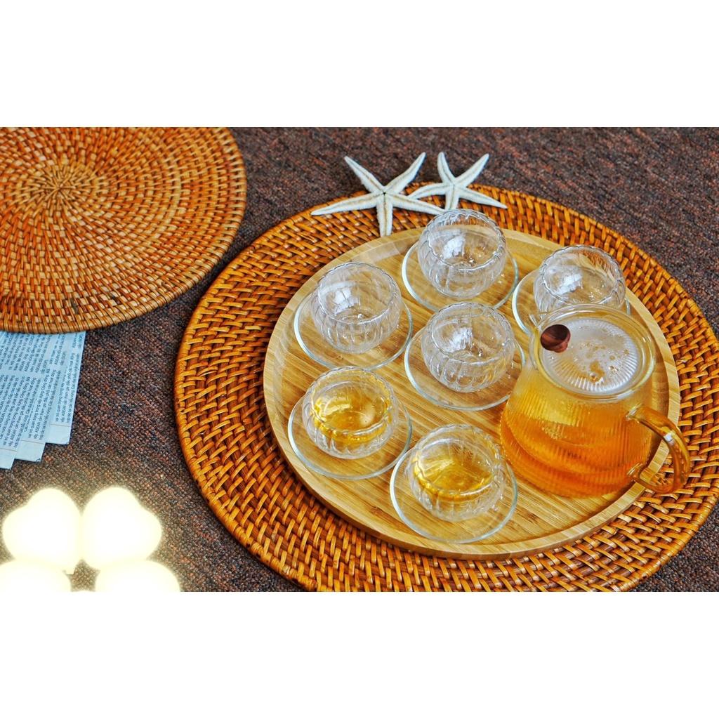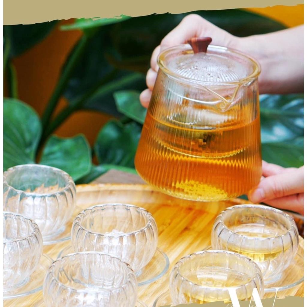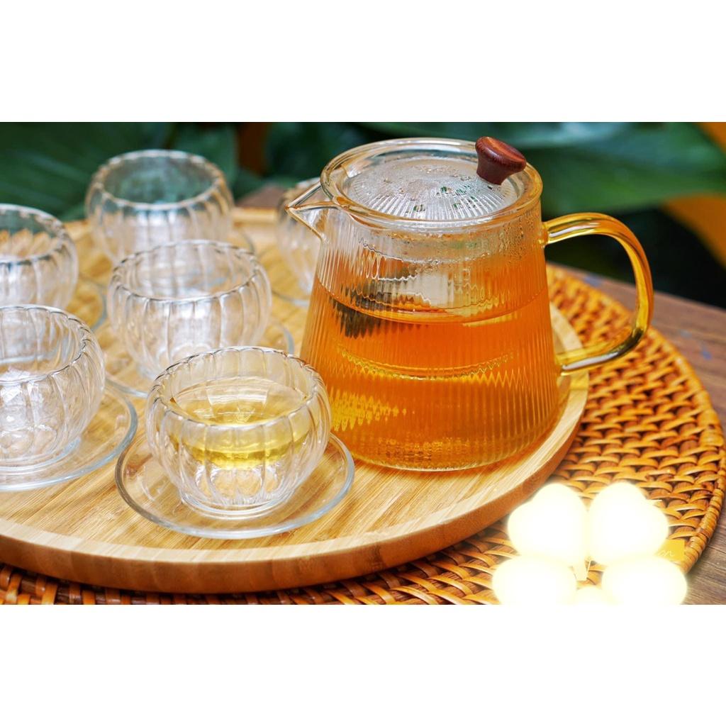 ✨Bộ ấm chén thủy tinh pha trà vân sọc bí 600ml kèm khay