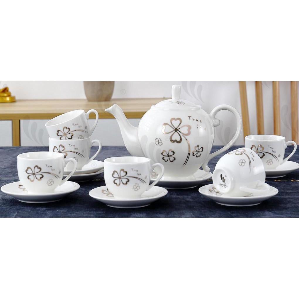 Một bộ sản phẩm bao gồm: 01 ấm, 01 đĩa ấm, 06 chén và 06 đĩa chén. Bộ sản phẩm được làm từ chất liệu gốm cao cấp, bảo đảm an toàn vệ sinh