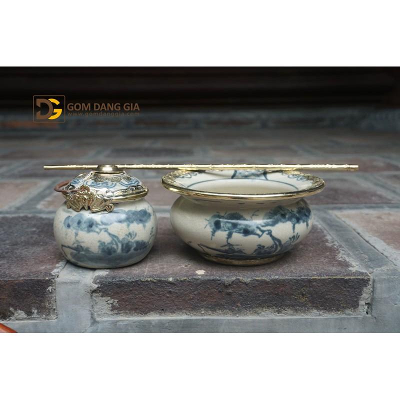 Chất liệu: Gốm men giả cổ, men rạn bọc đồng
