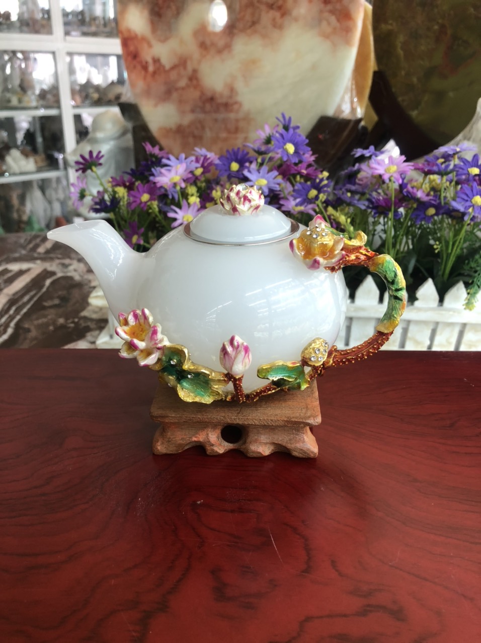 Chất liệu: Đá bạch ngọc Bao gồm: 01 ấm; 06 chén, 1 đế gỗ và hộp đựng cao cấp Kích thước : Dài 36 cm x Rộng 25 cm x Cao 13 cm ( Bao