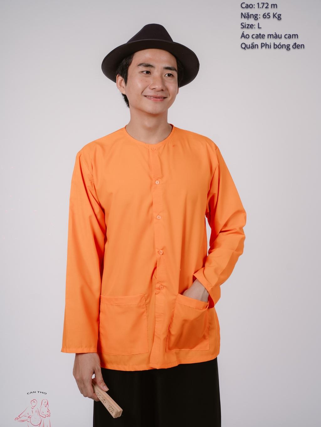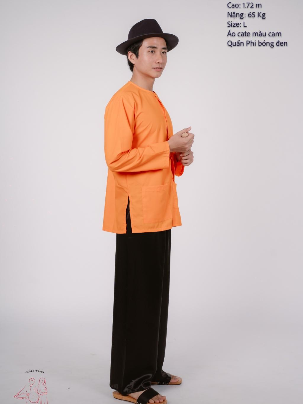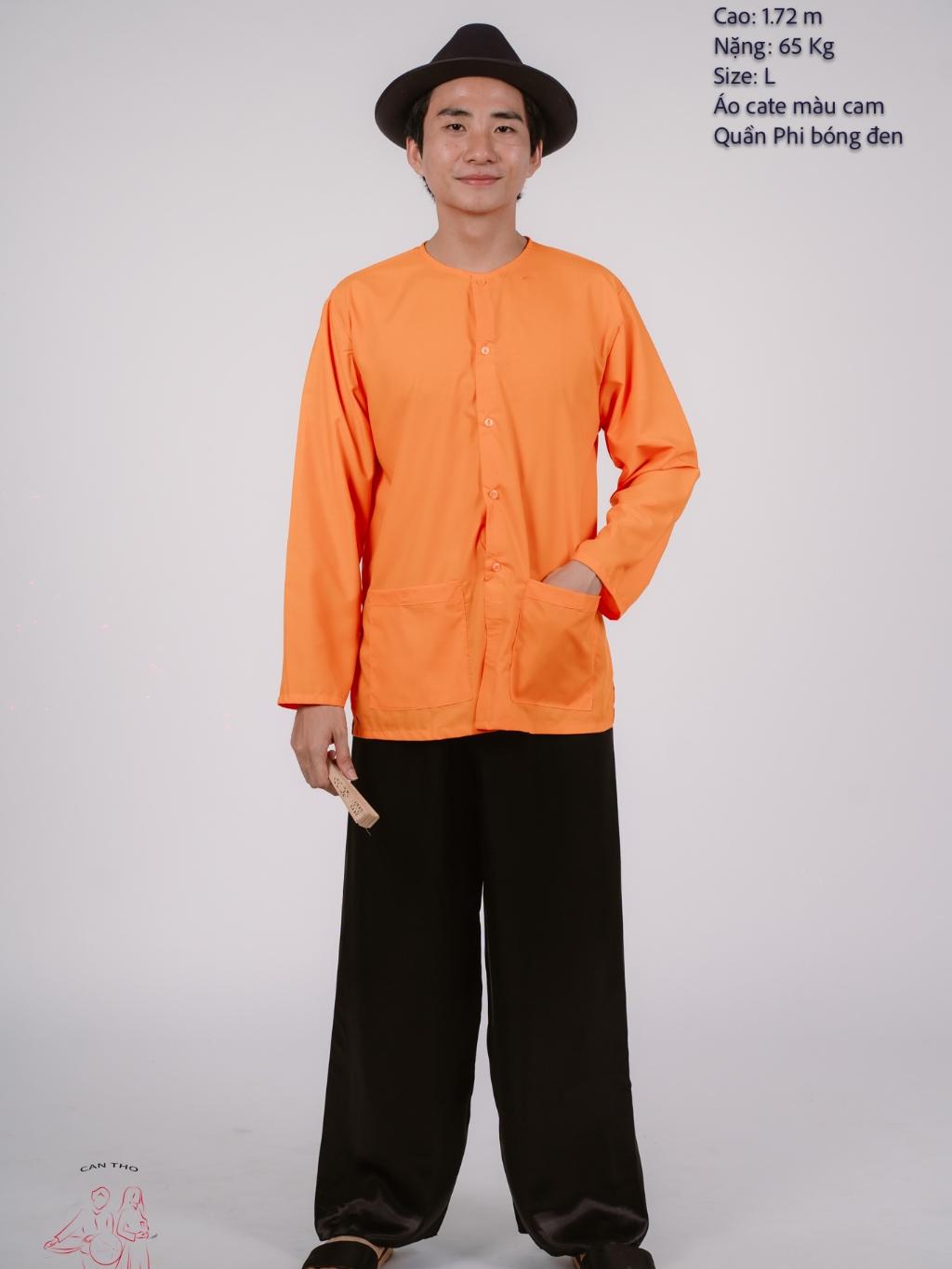 ✨Bộ áo bà ba nam phối áo cate cam+ Quần cate đen - Có bộ bà ba Bigsize