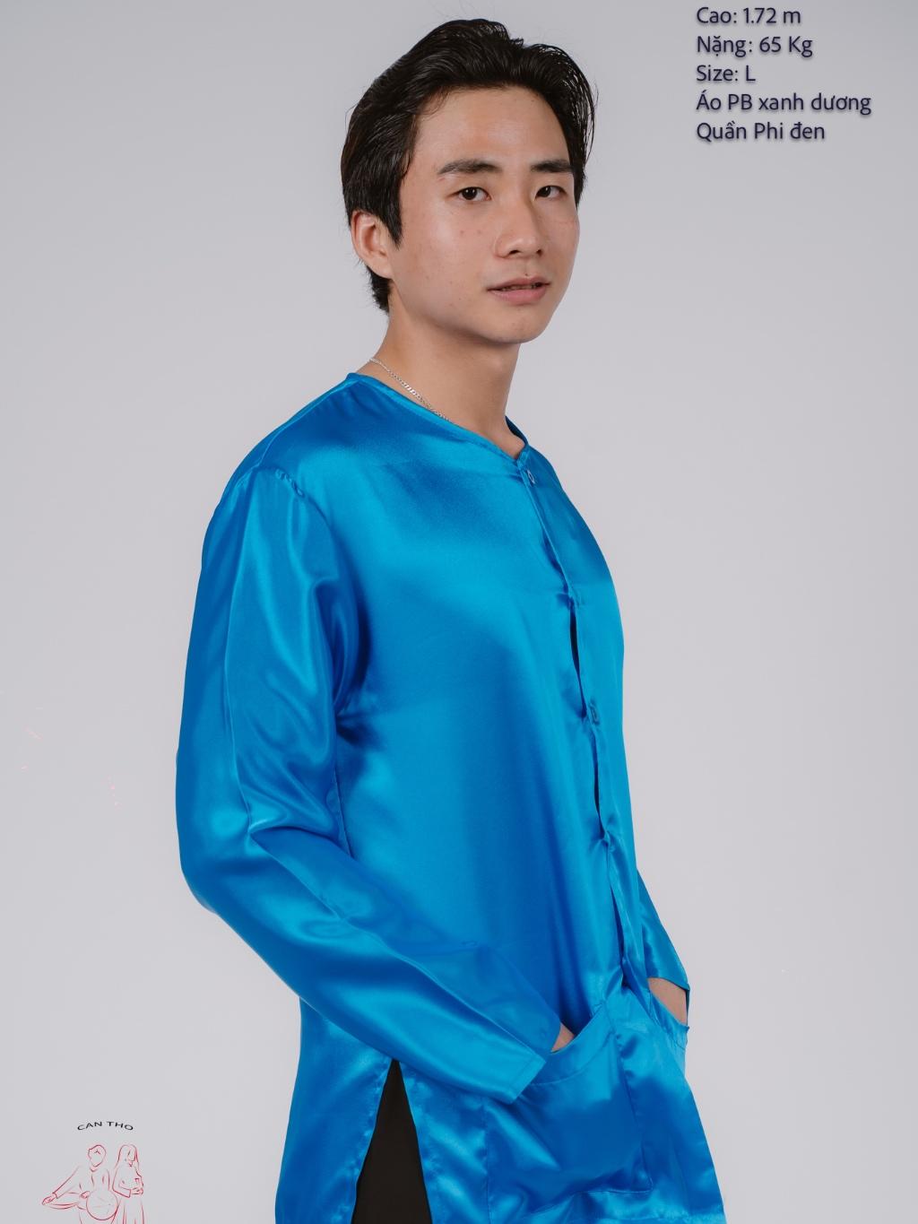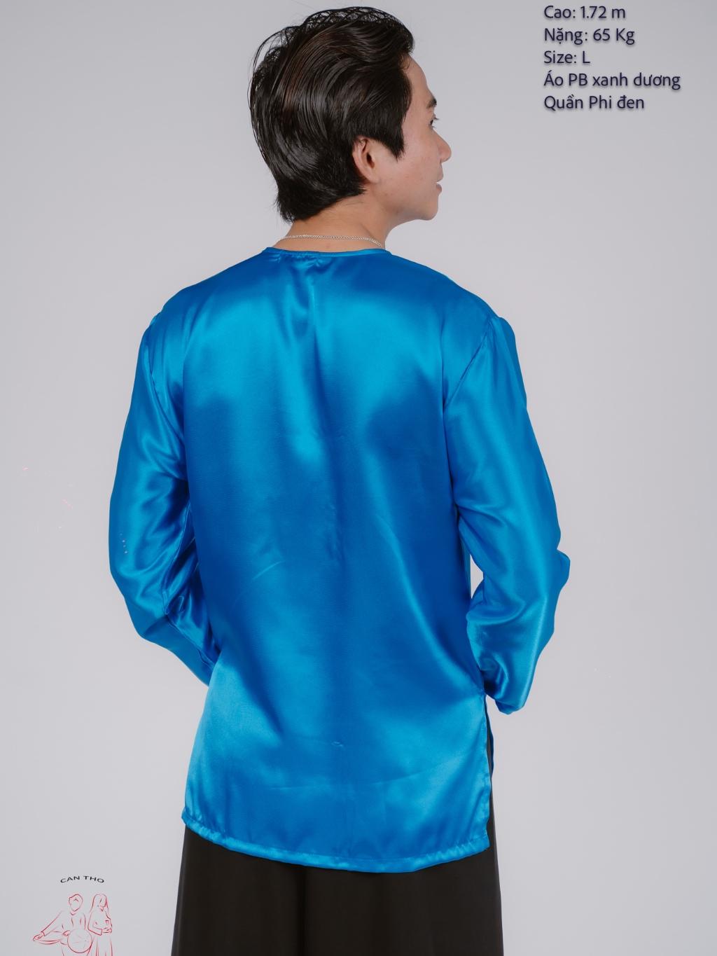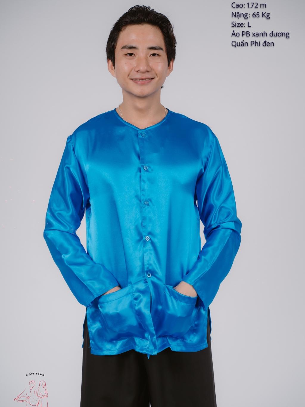✨Bộ áo bà ba nam phối áo phi xanh dương + Quần phi đen - Có bộ bà ba Bigsize