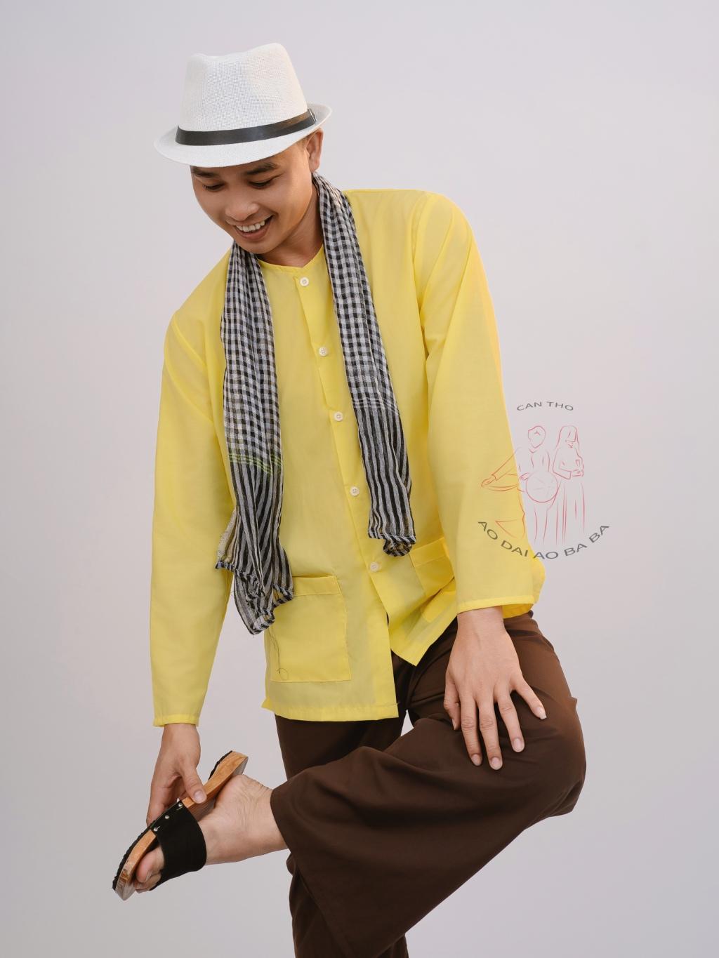 Bộ Bà Ba Nam Áo Vàng và Quần Nâu Vải Kate Mô tả chi tiết: • Chất liệu: Vải kate, thoáng mát, mềm mại và bền đẹp. • Màu sắc: Áo vàng- quần nâu đất trang nhã, thanh lịch, phù hợp với phon...