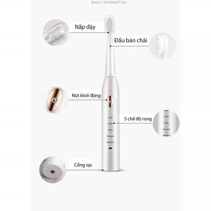 Mua tại TiktokBộ sản phẩm vệ sinh chăm sóc răng miệng bằng điện Electric Toothbrush , Tự động 5 Chế Độ Công Nghệ Sóng Âm Kèm 4 đầu Bàn chải - Chải Sạch Mảng Bám chăm sóc nướu THÔNG SỐ SẢN PHẨM Sonicare