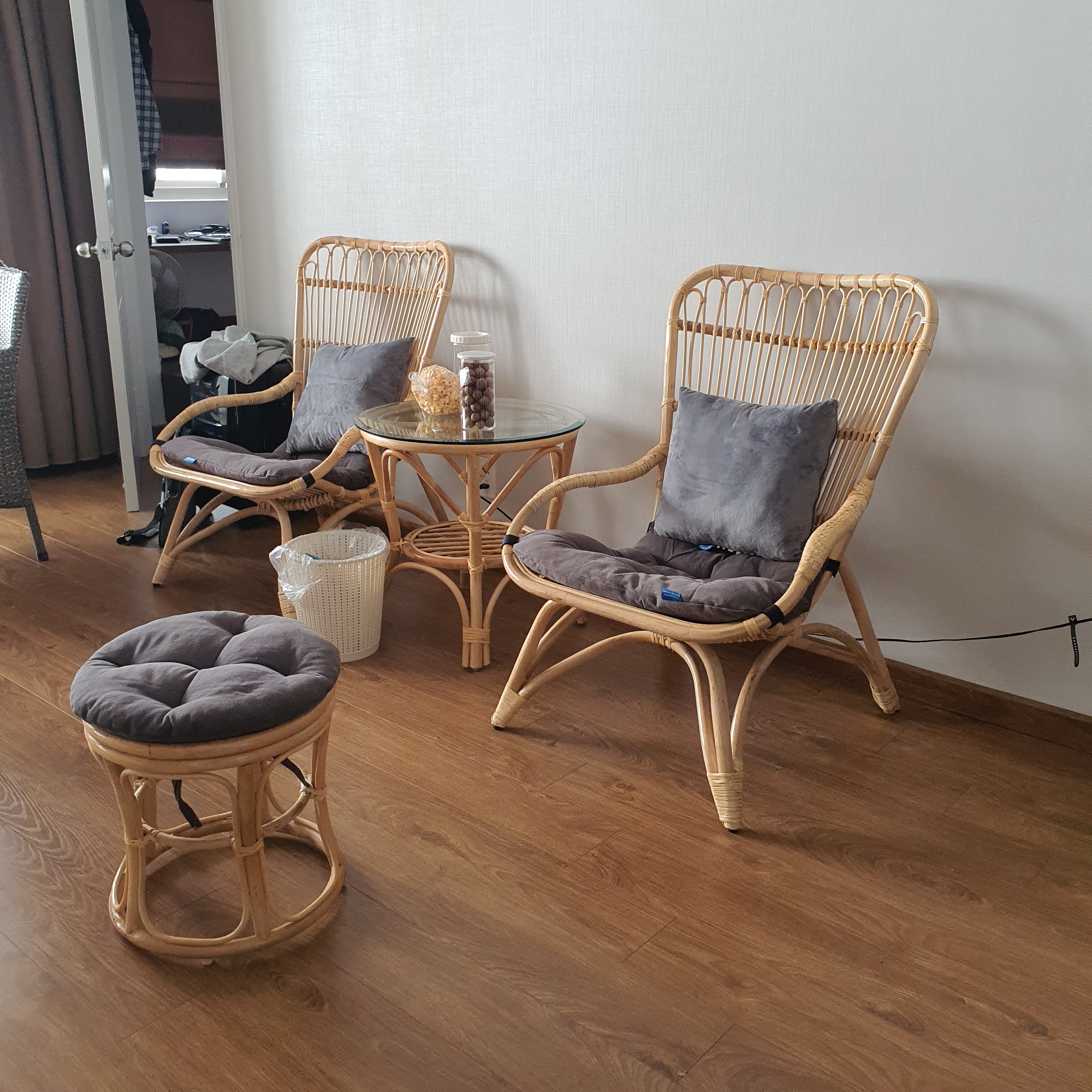 + Bộ sản phẩm gồm : 01 ghế size 1m + 01 nệm màu sắc như hình + 01 đôn theo ghế (nếu chọn bộ có đôn) + Chất liệu ghế : Mây song mật