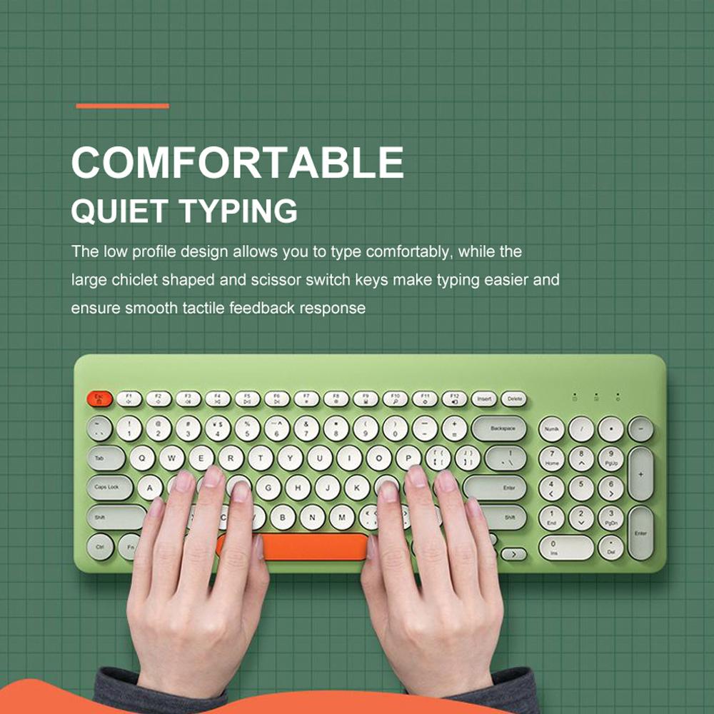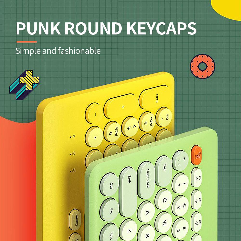 Features: 2.4G wireless connection,96keys,multimedia shortcuts design meet your daily office needs. Punk round keycapsdesignfitsyourfingersand brings you comfortable typing experience.The mouse shape fits the palm perfectly,comfortable to use. Ergonomic design,tilt angle design of folding stand effectively