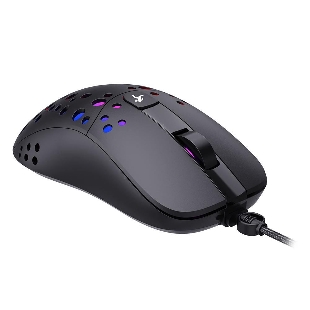 Features: Honeycomb hollow design, meets the ventilation and cooling effect required by the game player for a long time playing. It supports adjustable 800/1600/2400/3200/4800/6400DPI to meet a variety of needs, maximum 6400DPI provides high precision,
