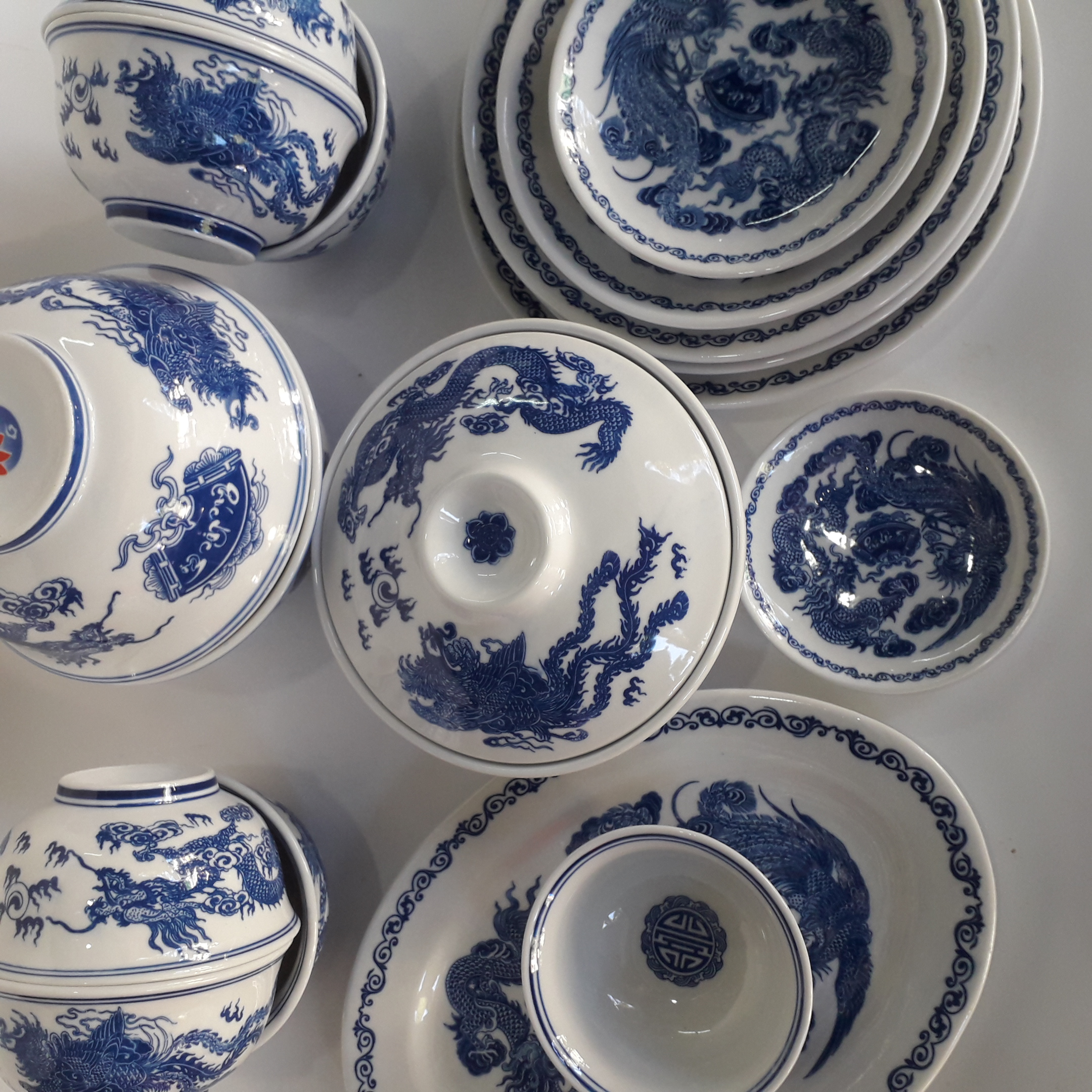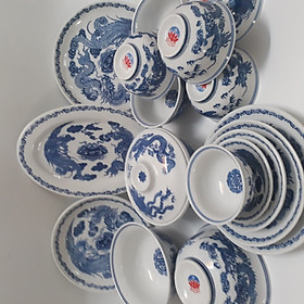 ✨Bộ bát đĩa đồ thờ đầy đủ men lam 17 chi tiết